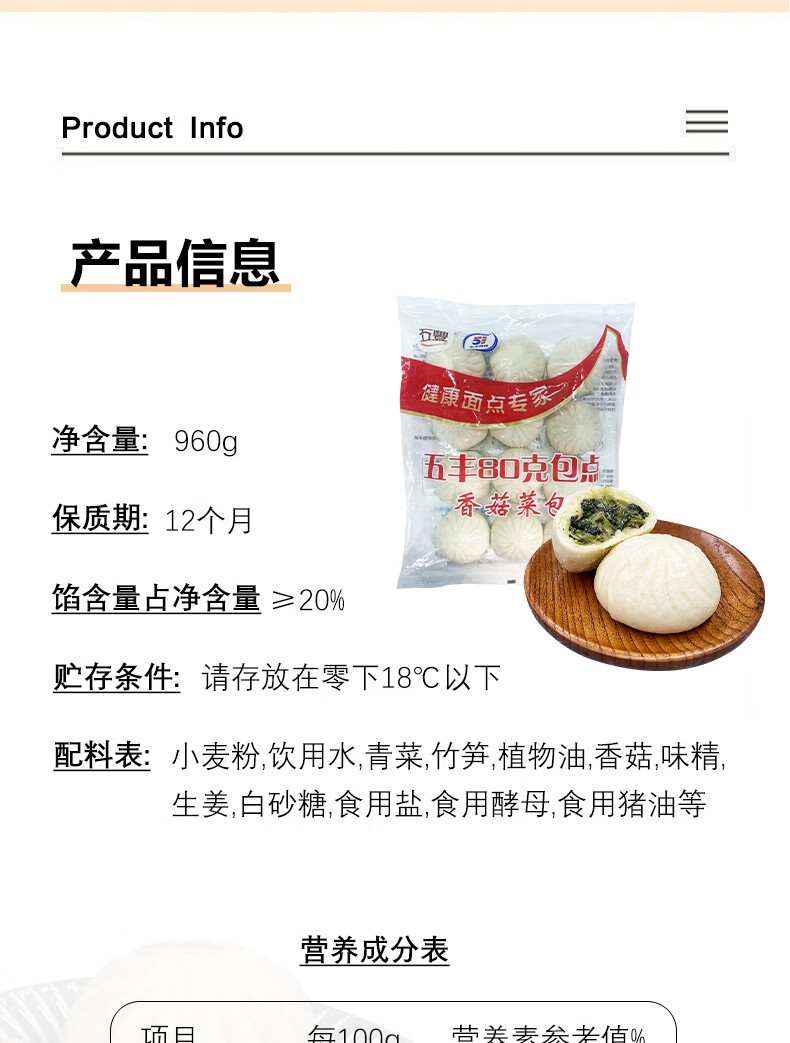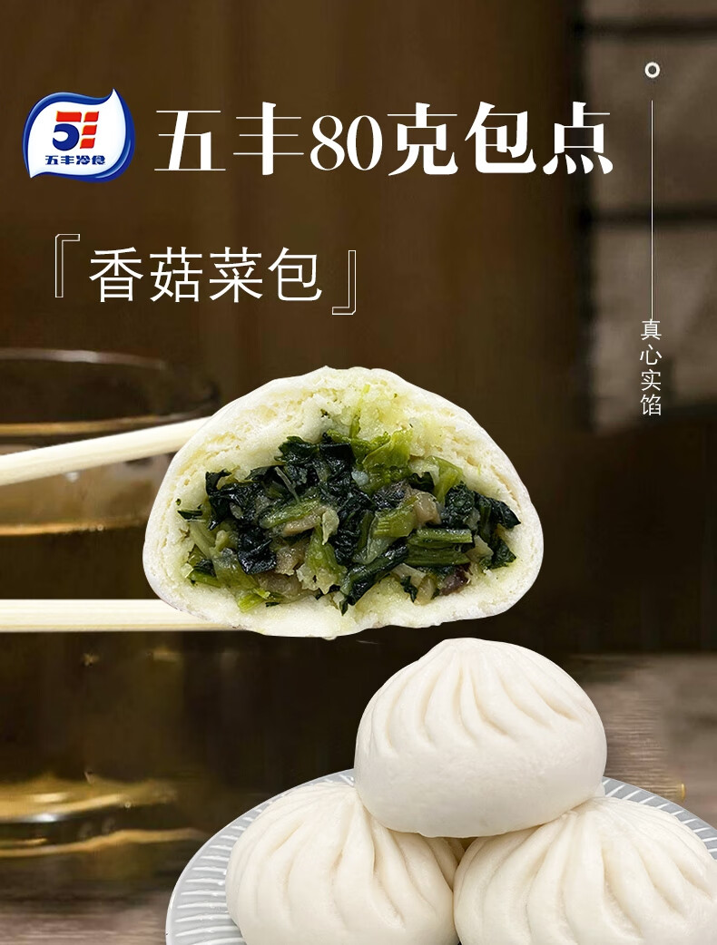 五丰香菇菜包960g 12只装 家庭装早餐包子速食面点华润出品供港