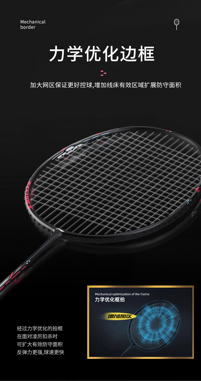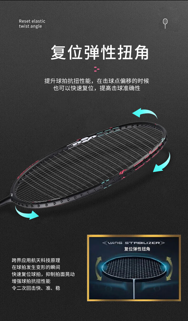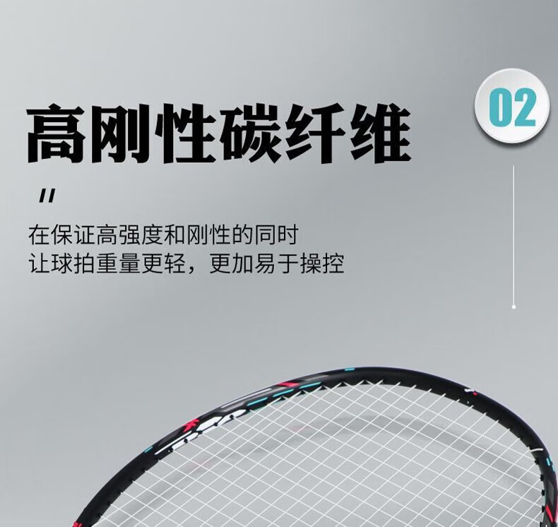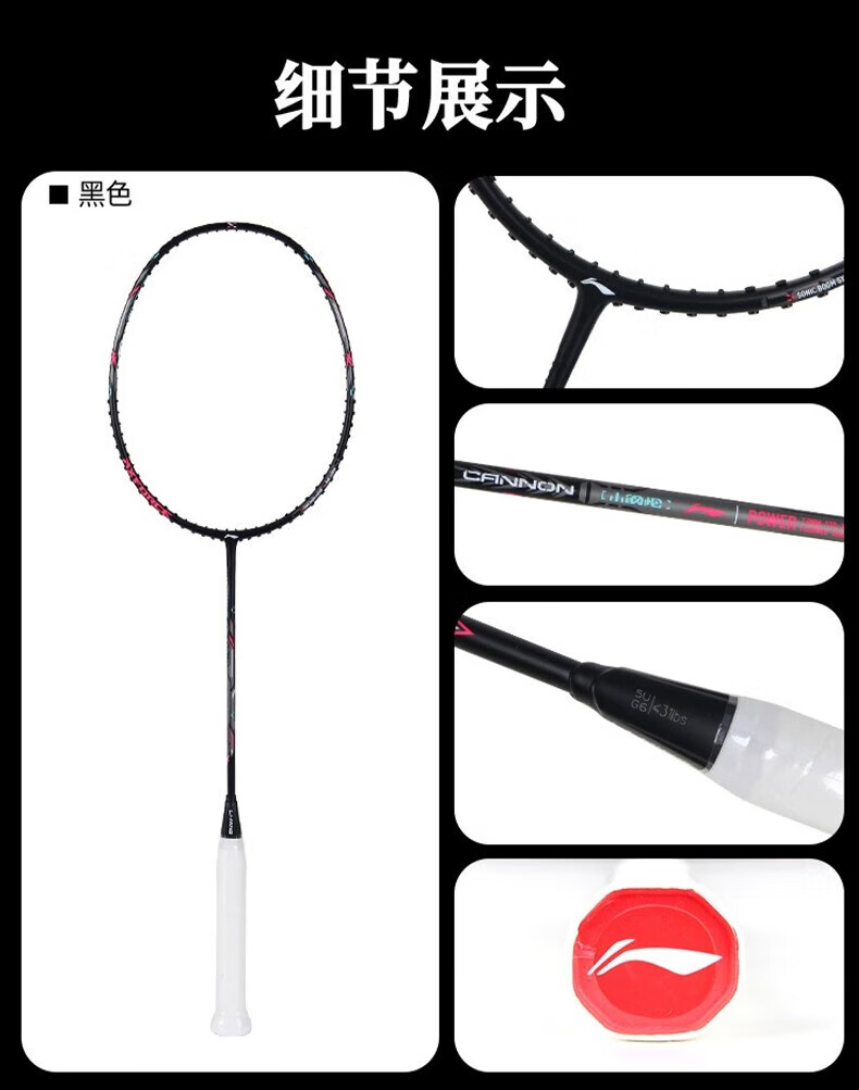 李宁(LI-NING)羽毛球拍雷霆小钢炮黑色全碳素专业进攻型单拍4U已拉线AYPT307-4