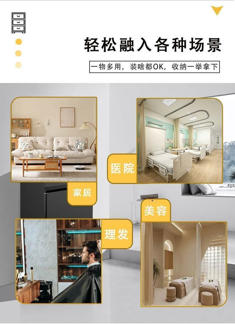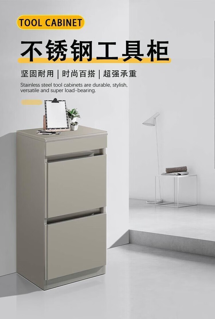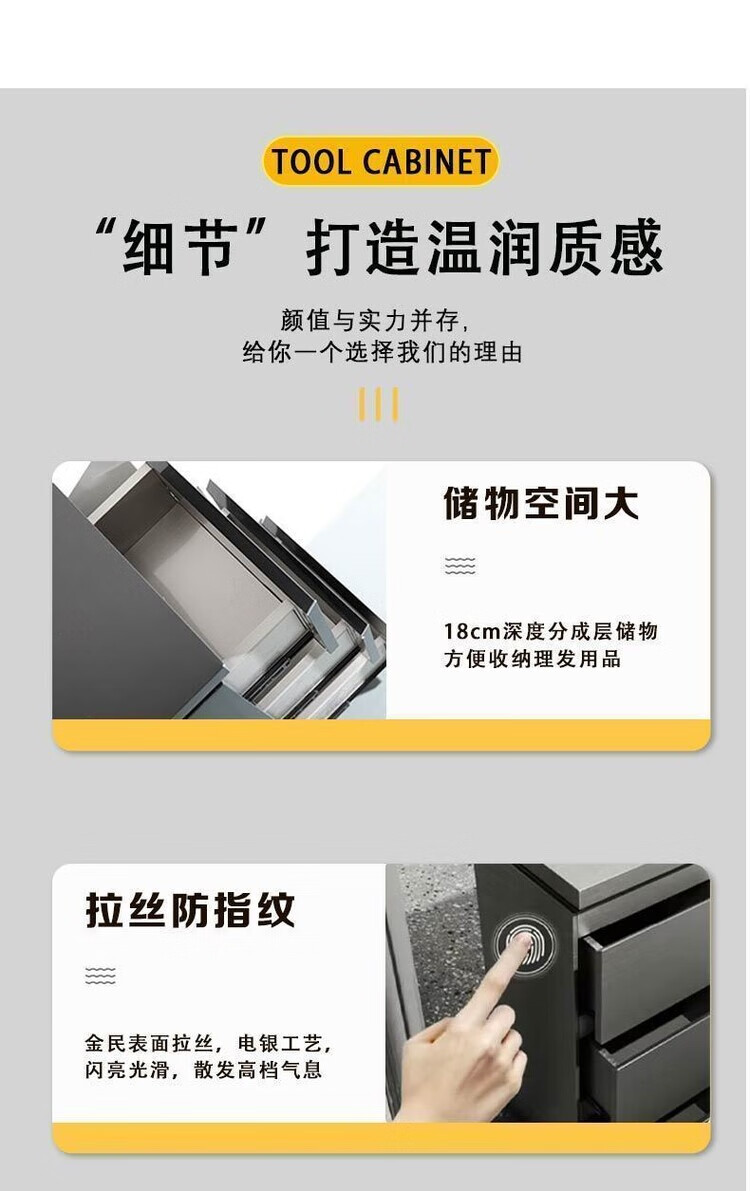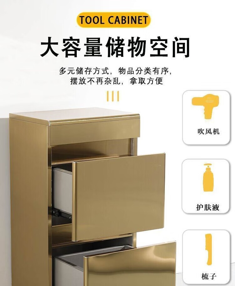 倘然之家理发店工具柜不锈钢理发工具柜子发廊专用发型师工具箱收纳储物柜 星空银 单面两抽