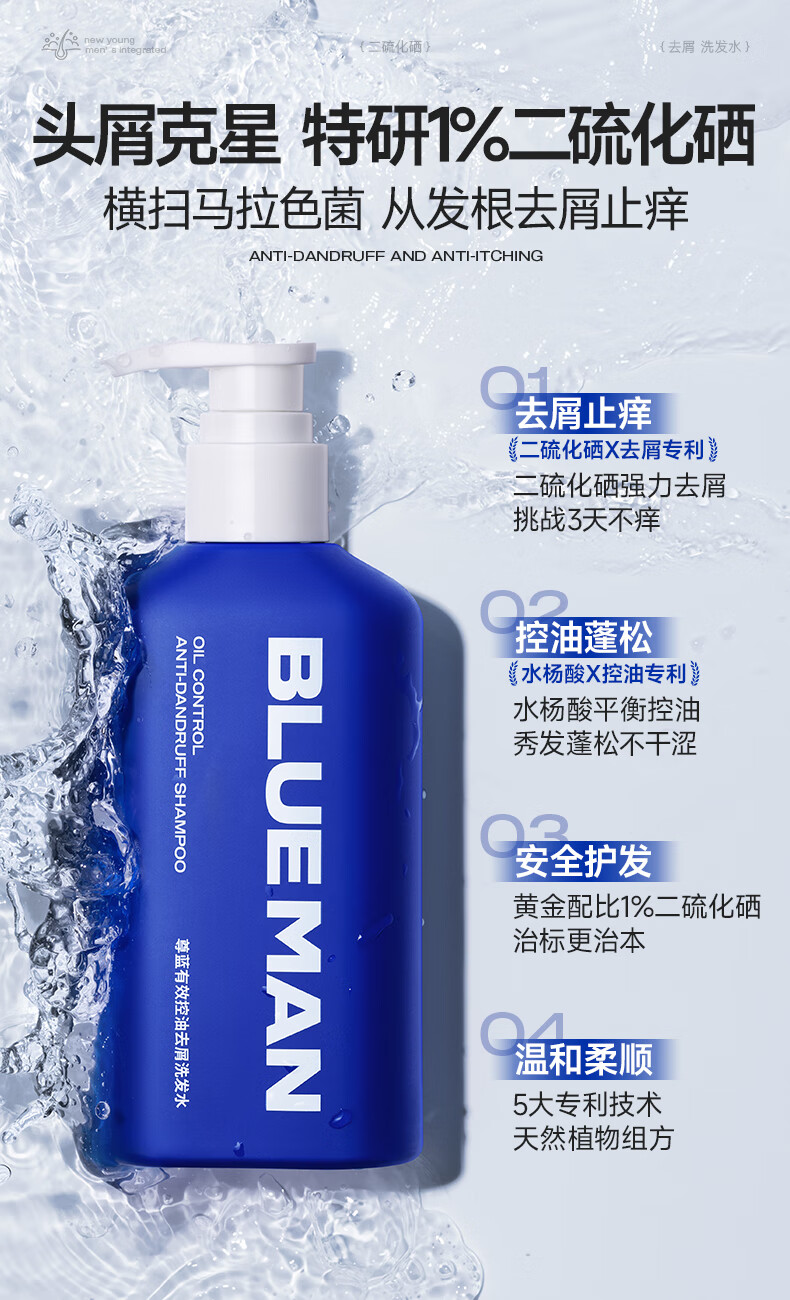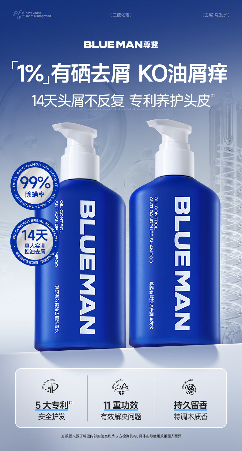 尊蓝1%二硫化硒去屑洗发水200g去屑止痒控油蓬松头皮清爽洗发露男女士