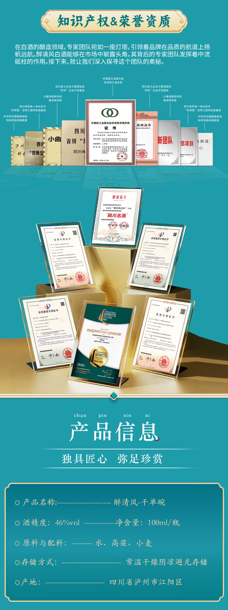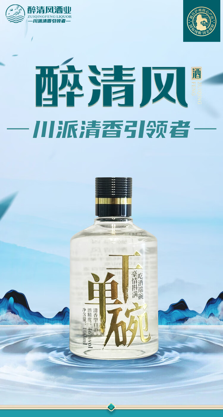 醉清风46度干单碗酒小曲清香型白酒100ml过年送礼年货礼盒