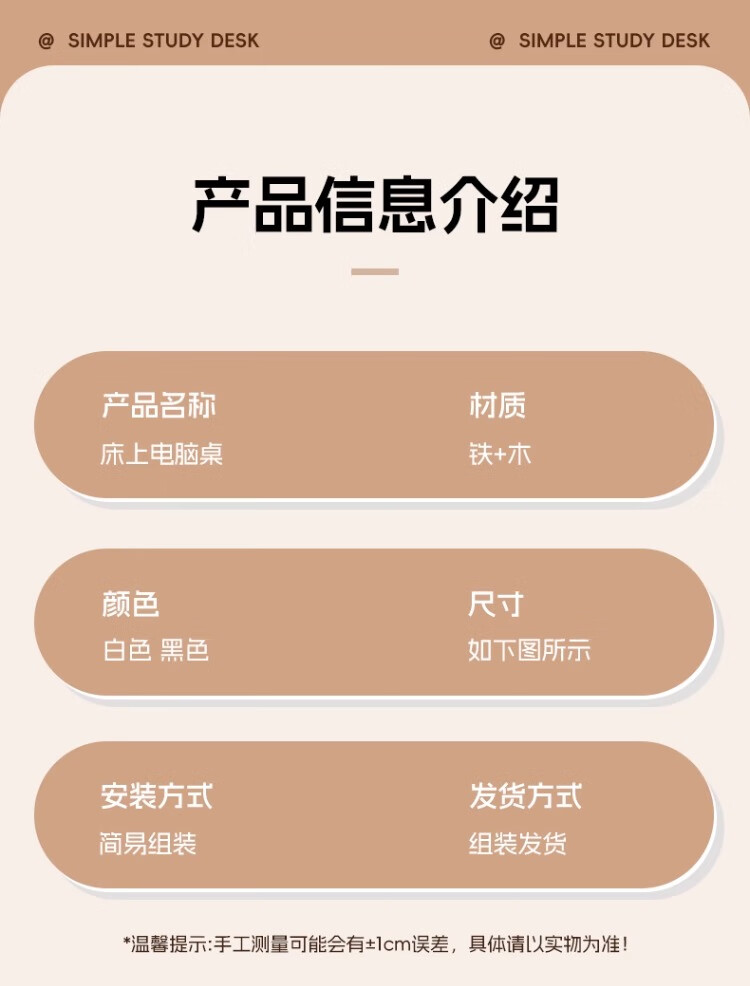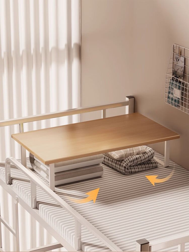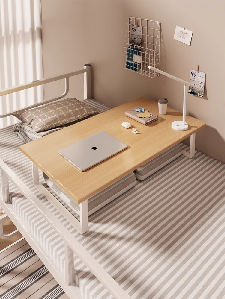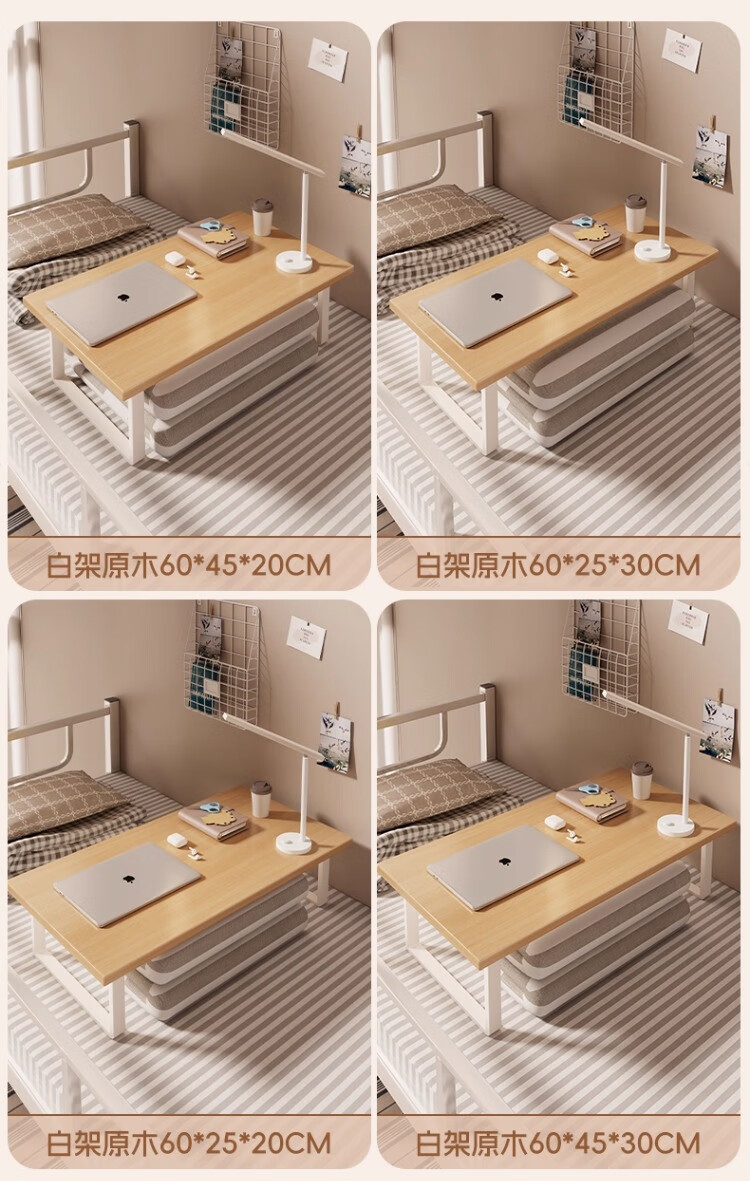 尔思家床上电脑桌卧室小型实木儿童学习桌床桌大学宿舍懒人桌简易小桌子 白架原木60*45*30cm