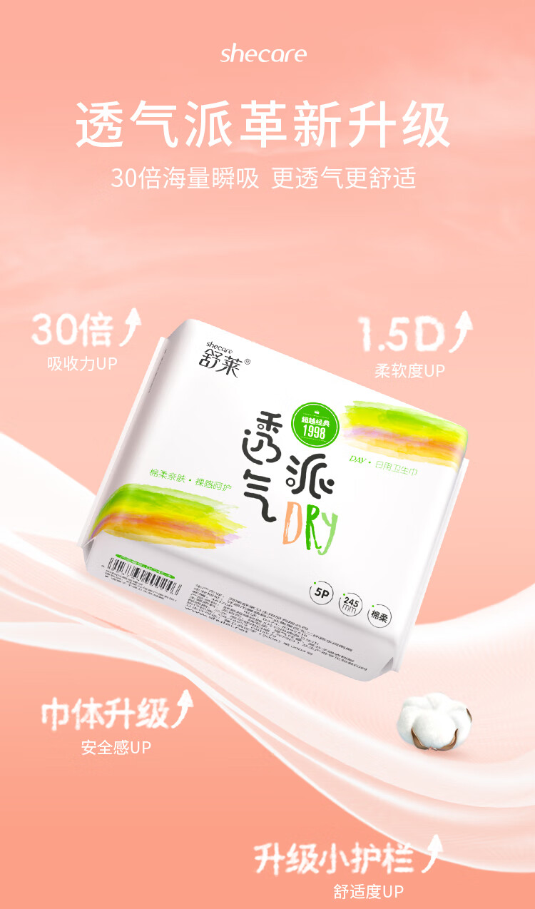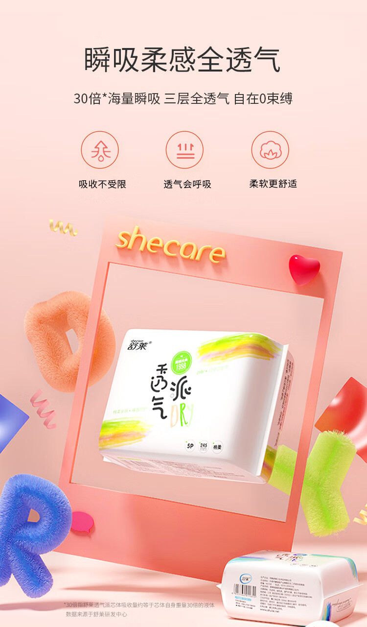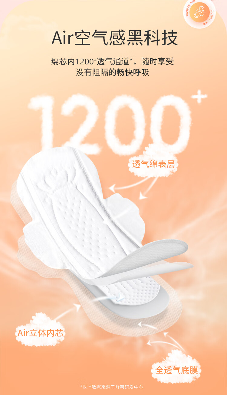 舒莱透气派干爽卫生巾极薄瞬吸加长姨妈巾日夜用【品牌直供安心品质】 纯夜用430mm*24片