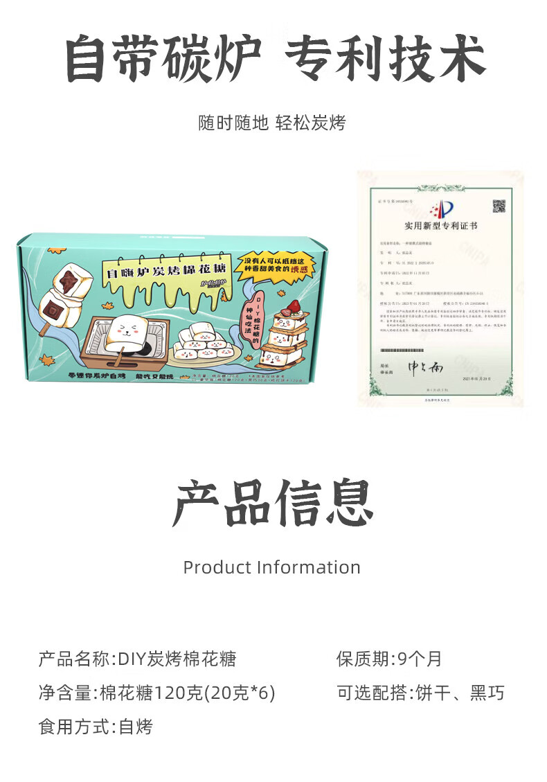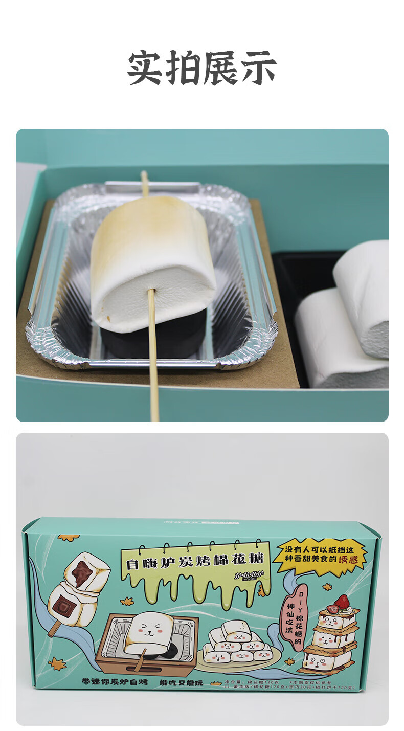 网红自嗨炉炭烤棉花糖DY手工巧克力夹心饼干儿童零食玩具 270g*1盒(豪华版DIY带炉自烤) 120g