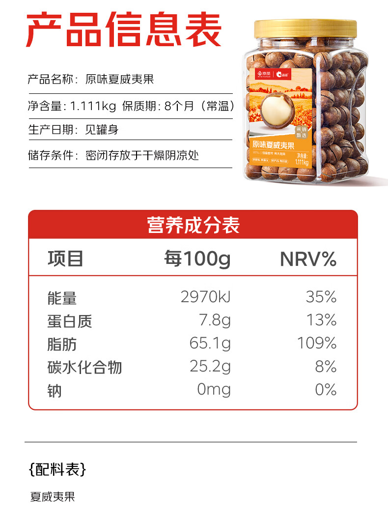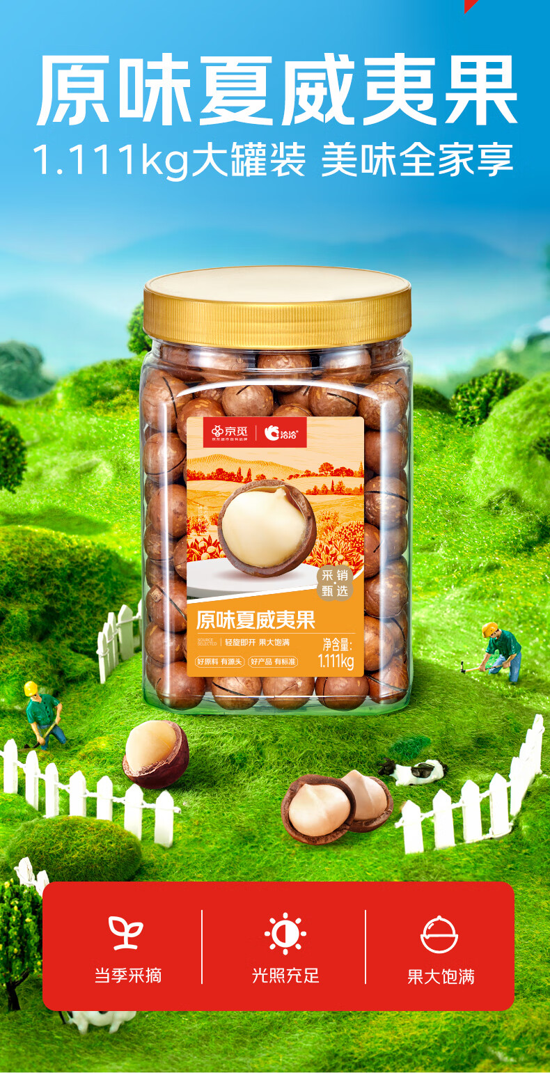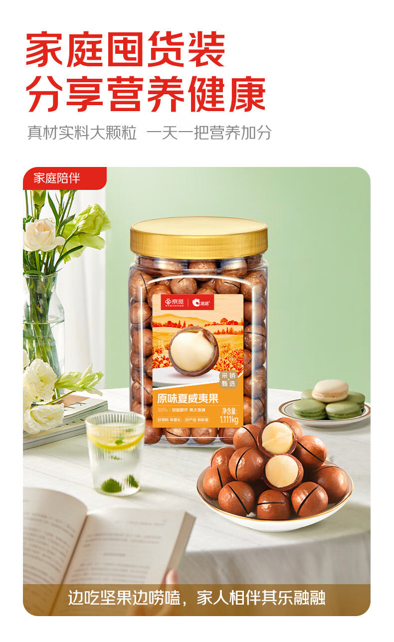 洽洽京觅夏威夷果原味罐装1111g 办公室坚果零食干果炒货休闲食品