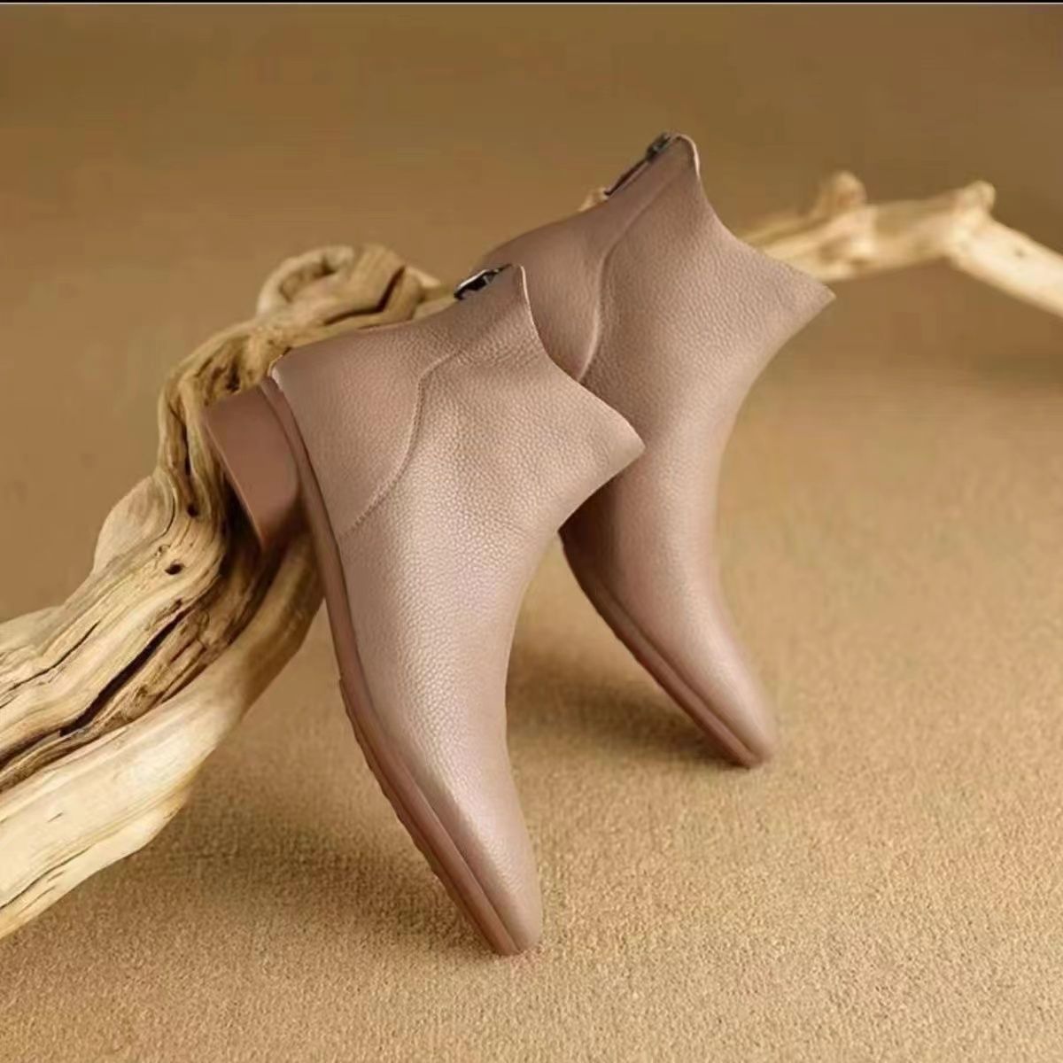 2024新款秋冬季软皮裸靴尖头低粗跟单靴软皮法式复古短靴女
