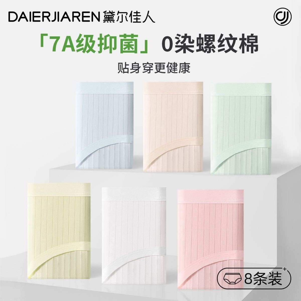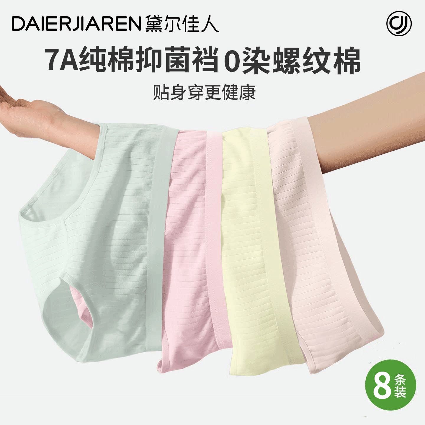 黛尔佳人内裤女纯棉抗菌7a抑菌纯色中腰大码胖mm三角短裤【8条】