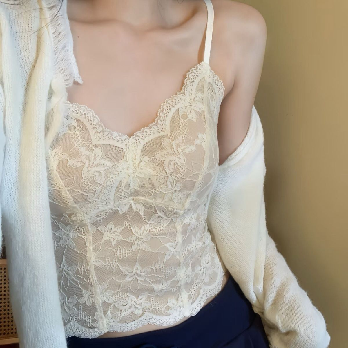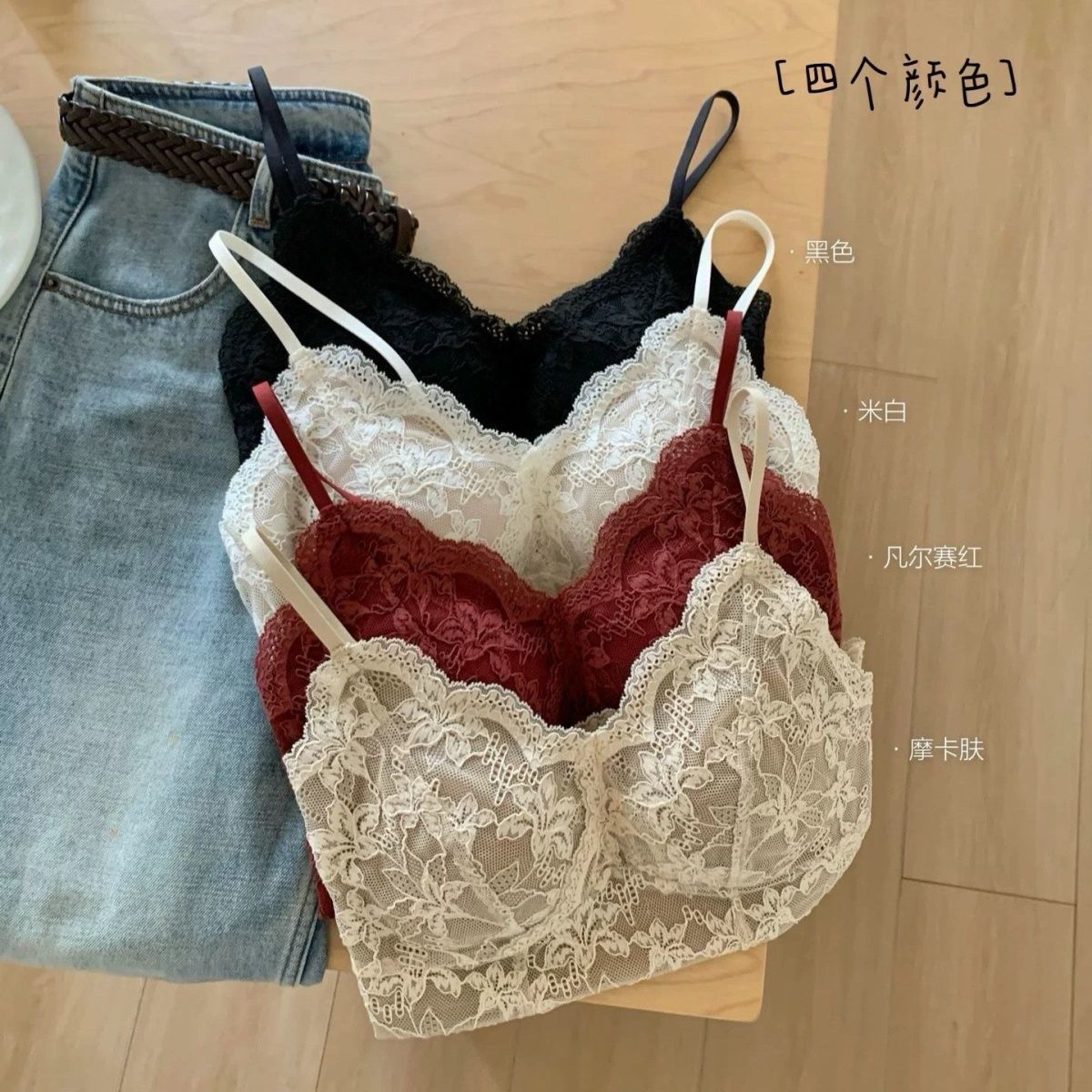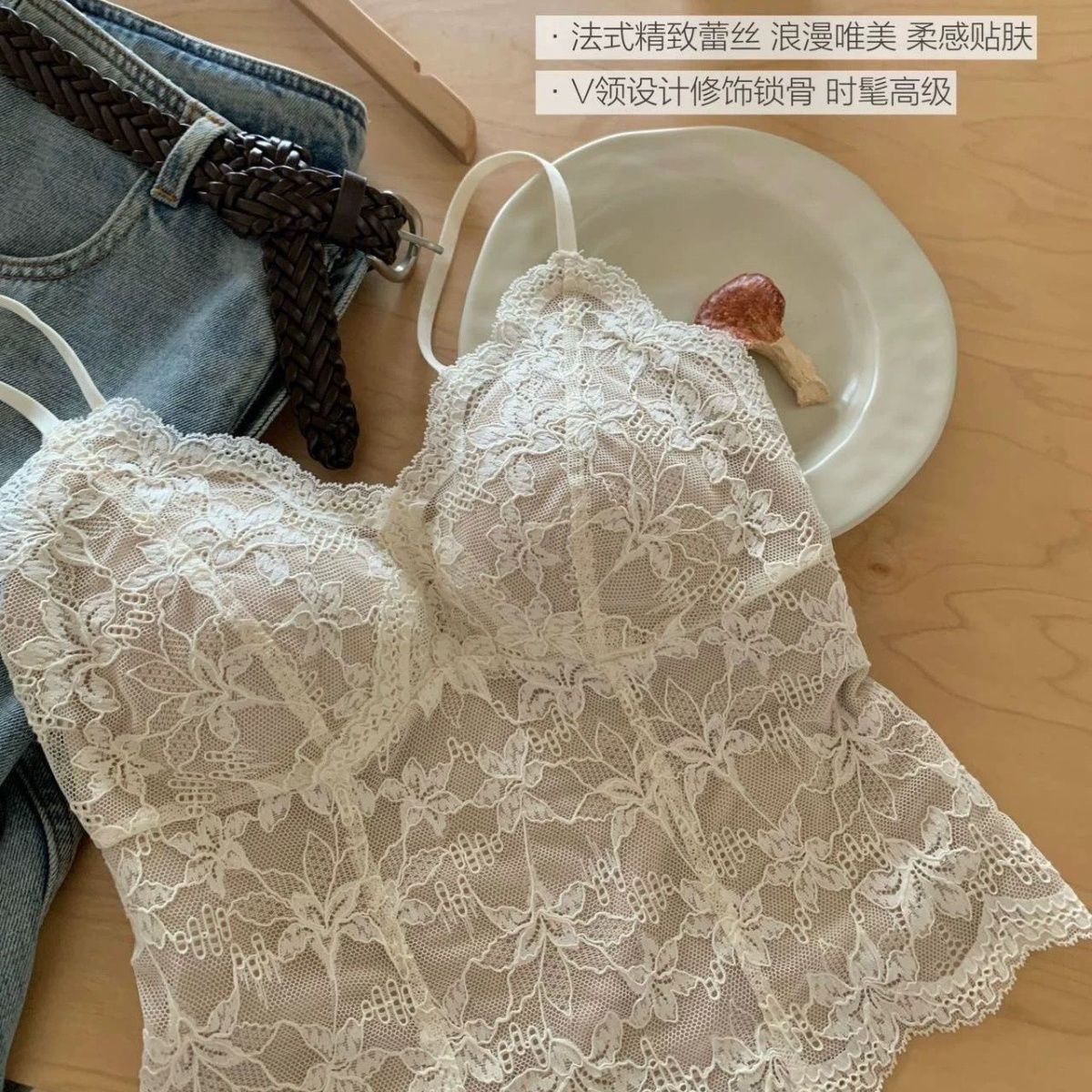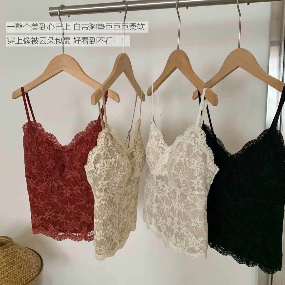 法式纯欲修身美背小吊带秋冬背心女带胸垫内搭打底蕾丝上衣可外穿