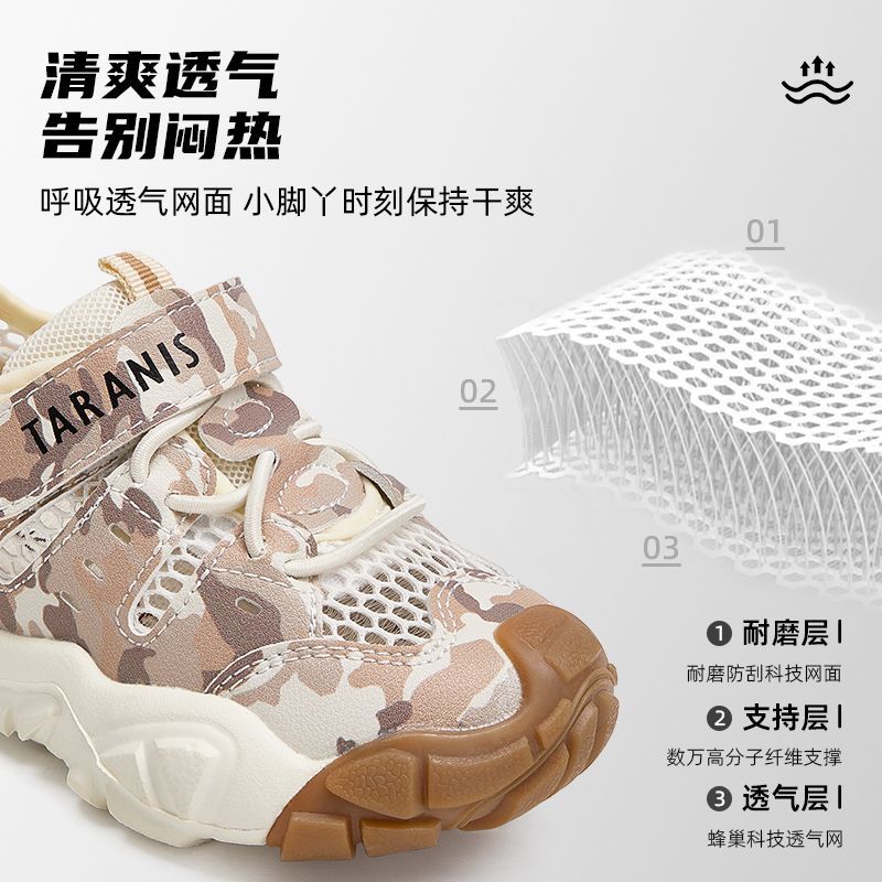 泰兰尼斯春季儿童运动鞋透气网孔软底舒适休闲鞋网布户外跑步鞋