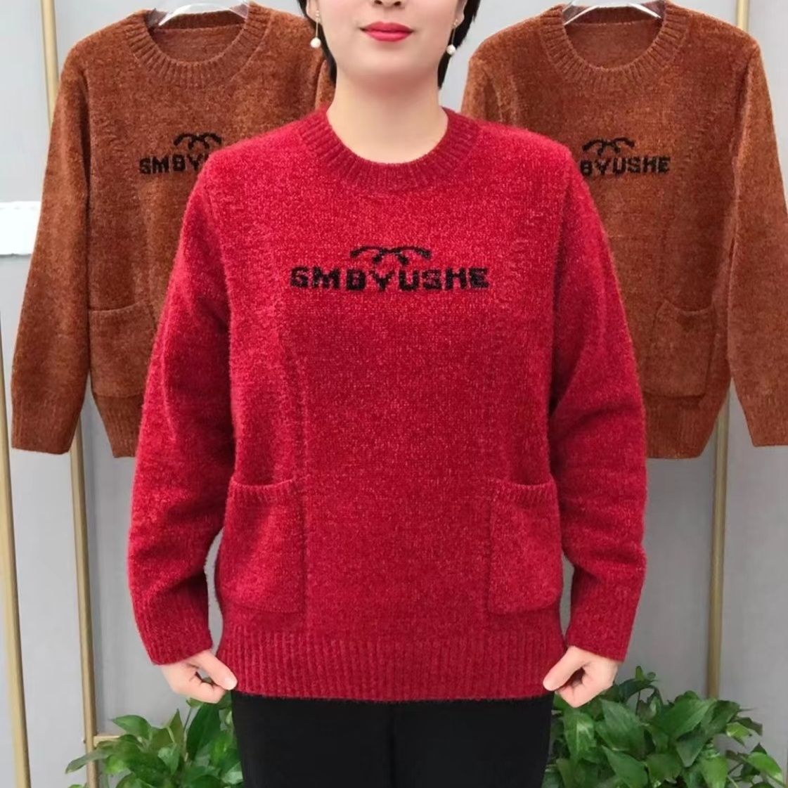 捡漏高档减龄纯色双兜长袖女时尚中老年休闲秋冬季上衣保暖妈妈装【10天内发货】