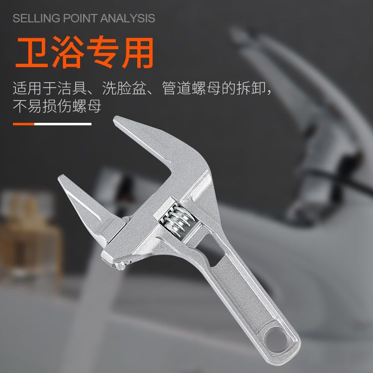 卫浴扳手多功能迷你短柄大开口维修水龙头下水器工具空调活口扳手
