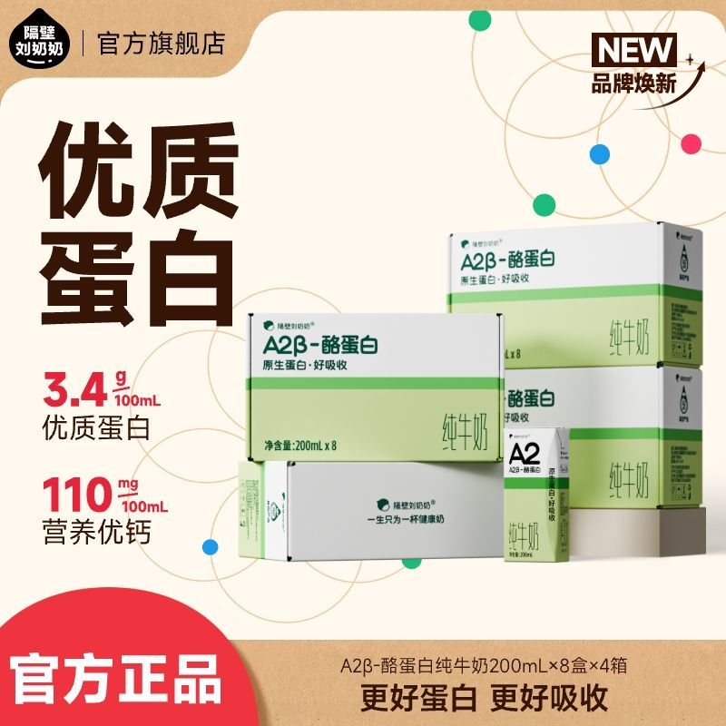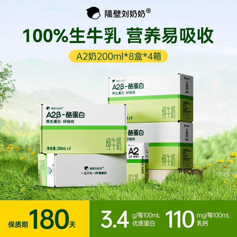 【新日期】隔壁刘奶奶 A2β酪蛋白200mL纯牛奶营养3.4g优质蛋白
