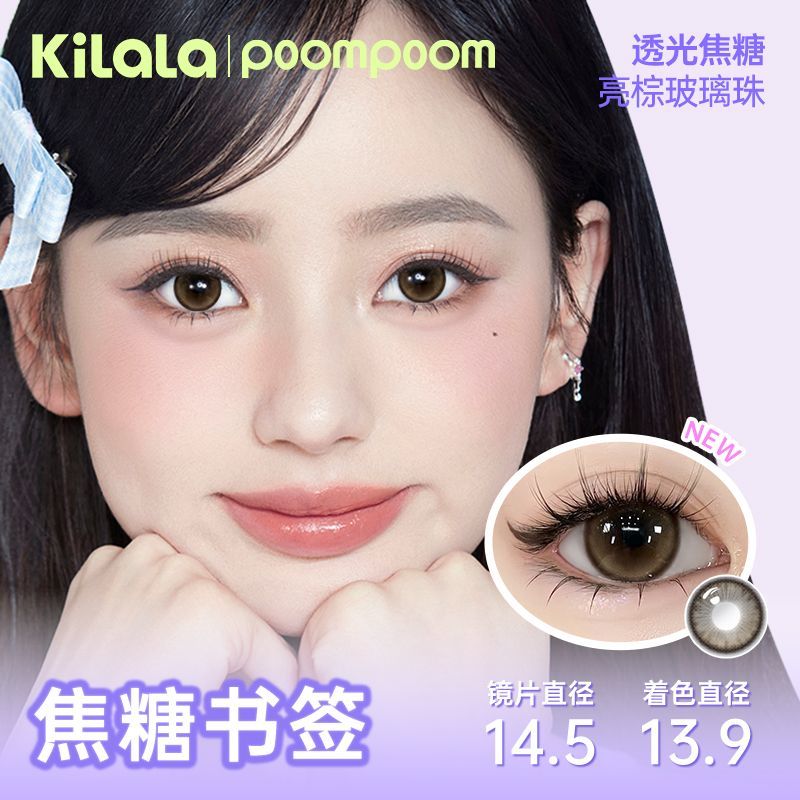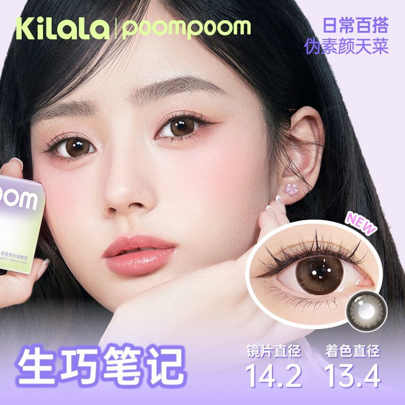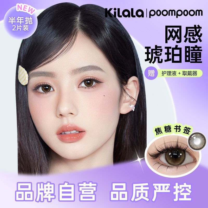 可啦啦poompoom心动必修课美瞳半年抛2片装隐形眼镜大小直径清透