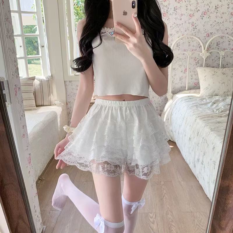 多层蕾丝安全裤女短裤可外穿防走光夏薄款打底裤jk保险阔版裙裤子