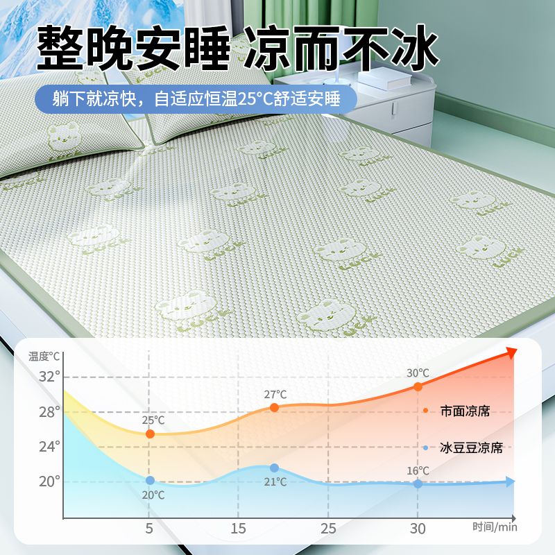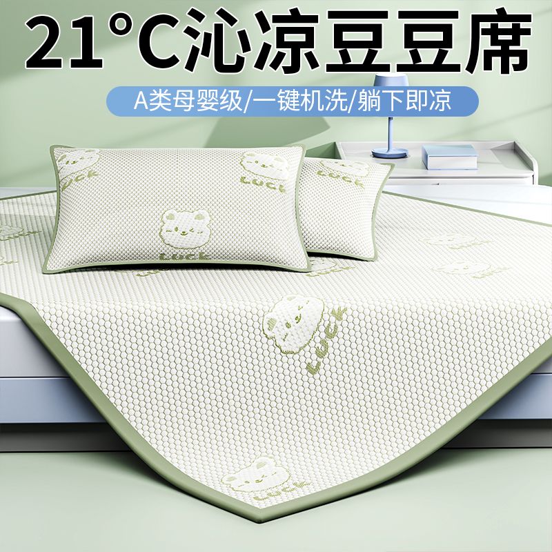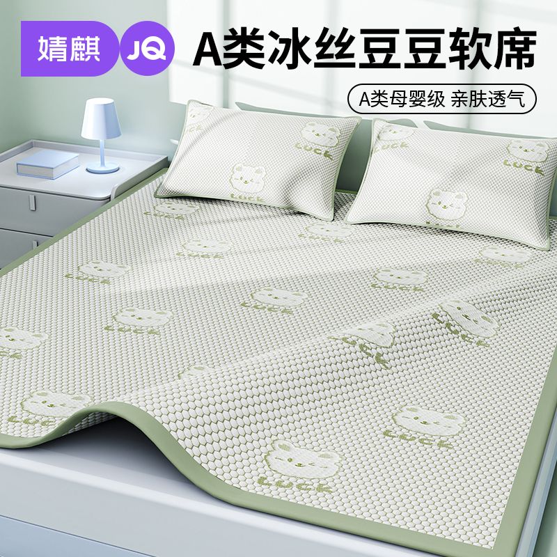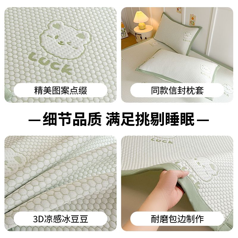 【婧麒A类冰豆豆凉席三件套】夏季婴儿童冰丝席家用可机洗软席子