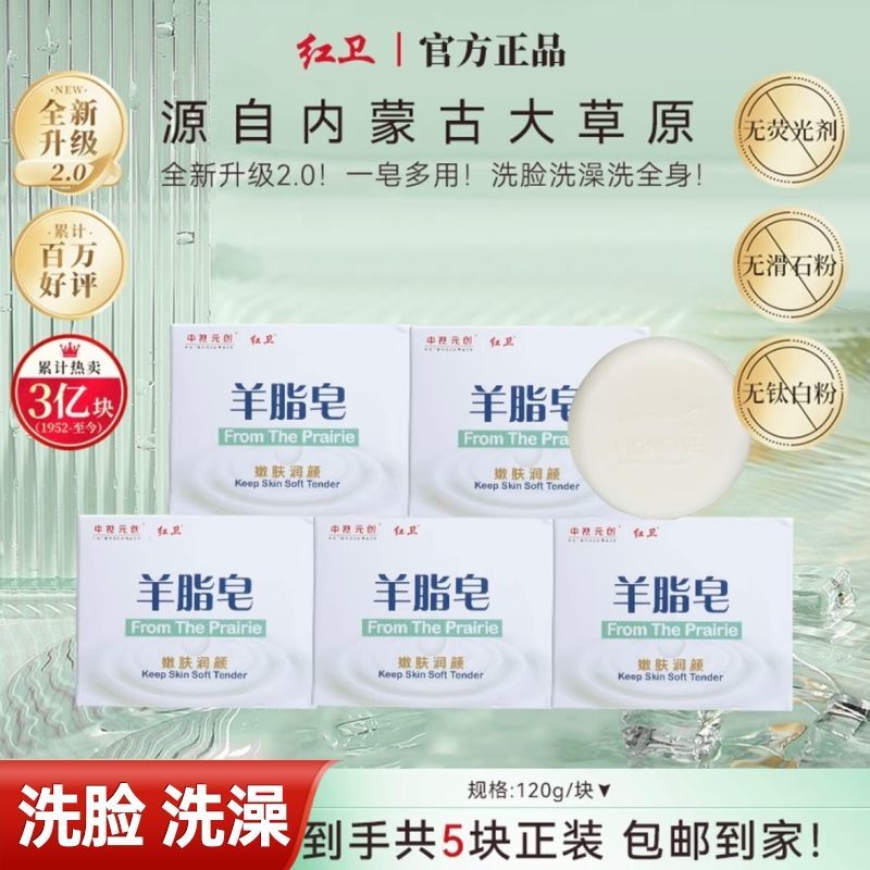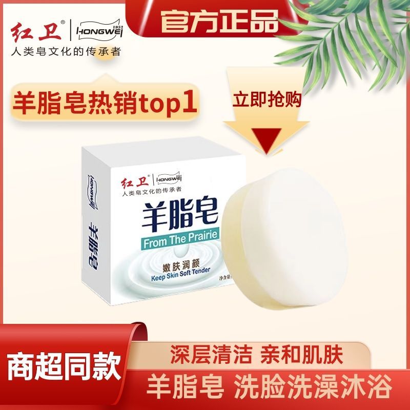 正品红卫羊脂皂留香洗脸沐浴滋润香皂面部清洁旗舰包头红卫羊奶皂