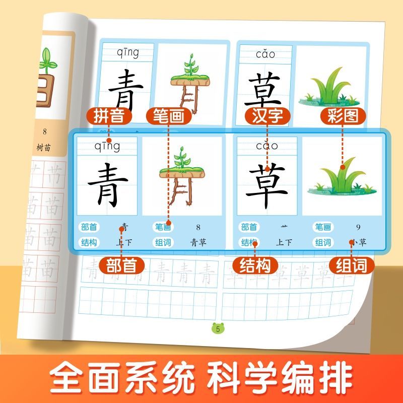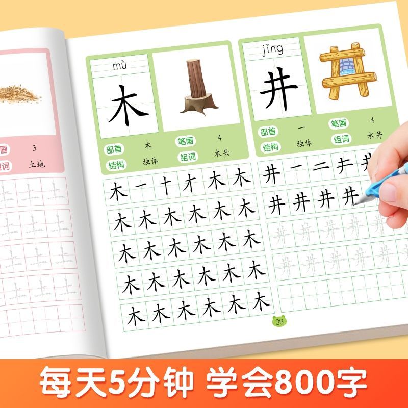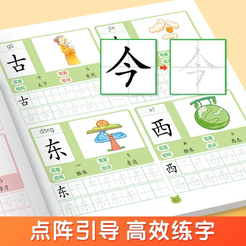 幼小衔接练字帖学前800字每日打卡点阵控笔训练临摹练字帖描红本