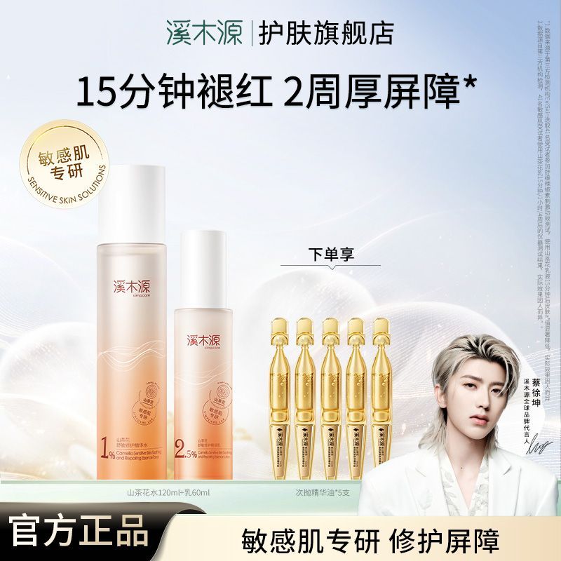 溪木源山茶花水乳套装舒缓敏感肌补水保湿洗面奶褪红修护肤品女