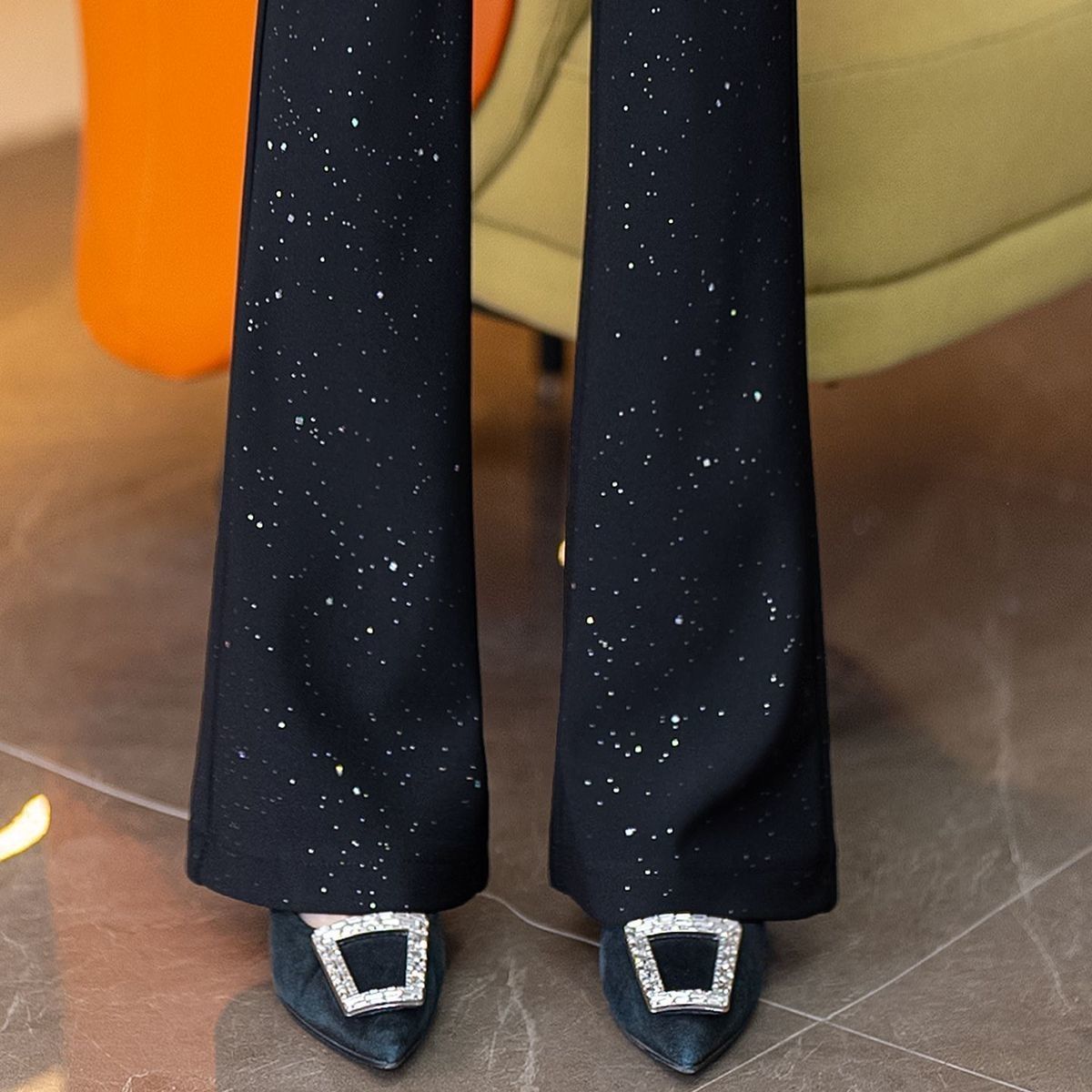 星空闪粉微喇裤2026春季新款松紧腰显瘦百搭裤子满天星裤子男