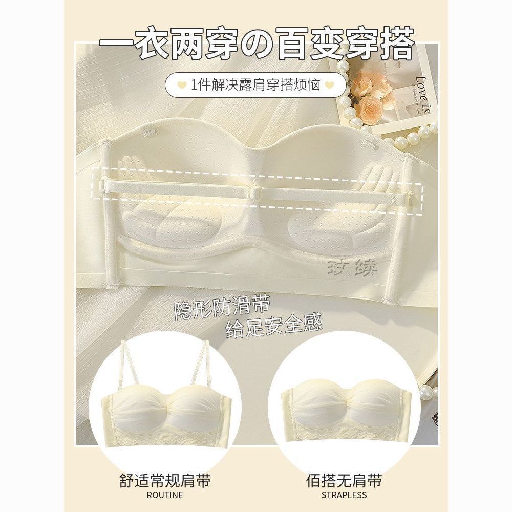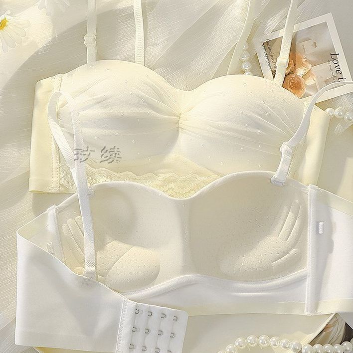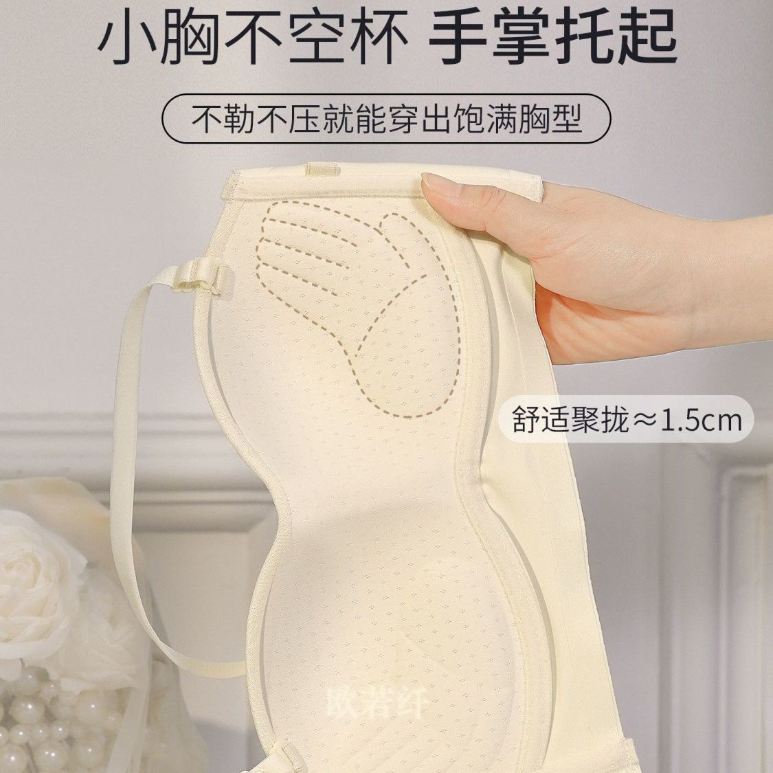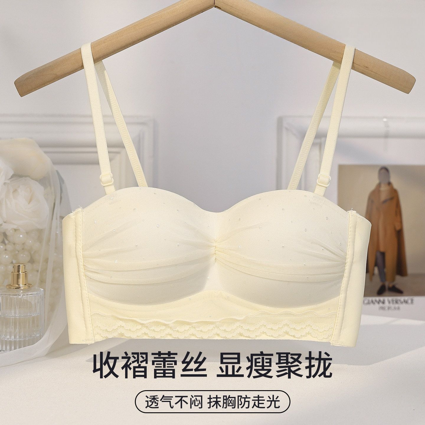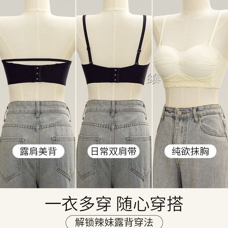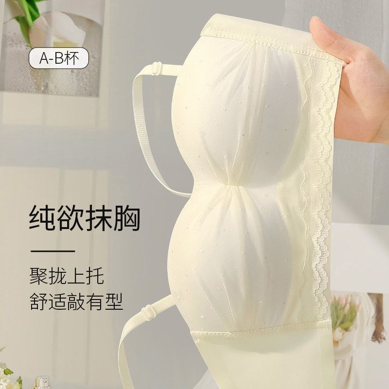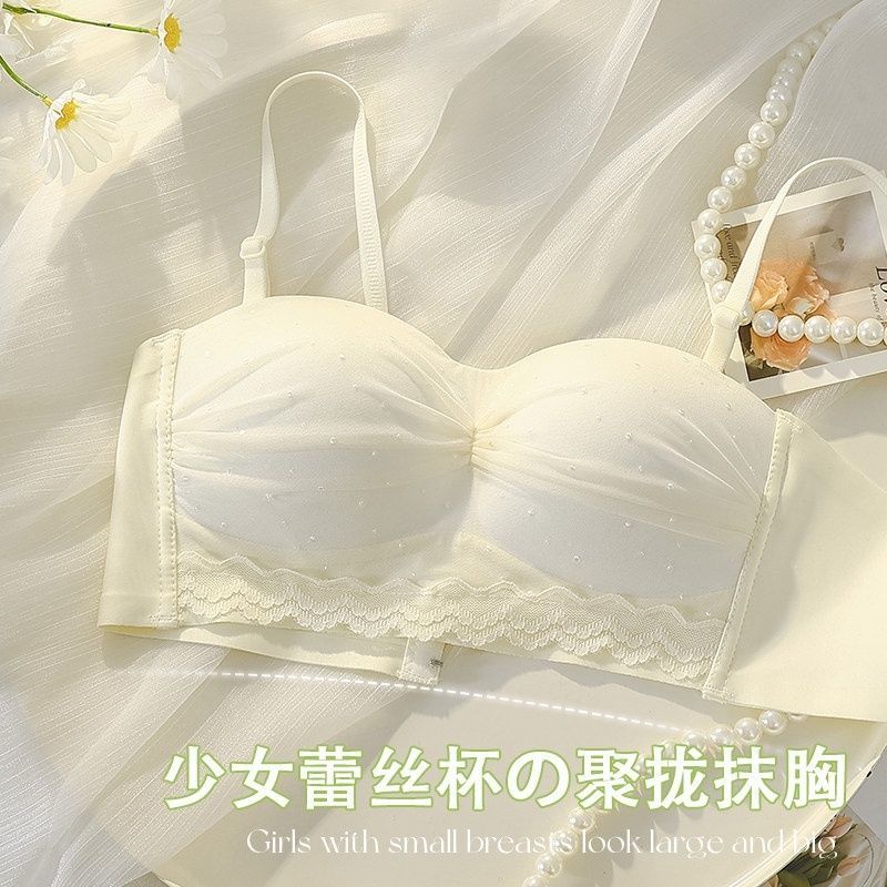 无磁无铁电子厂无肩带内衣女平胸小胸聚拢抹胸美背少女蕾丝文胸罩