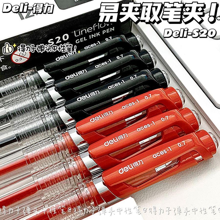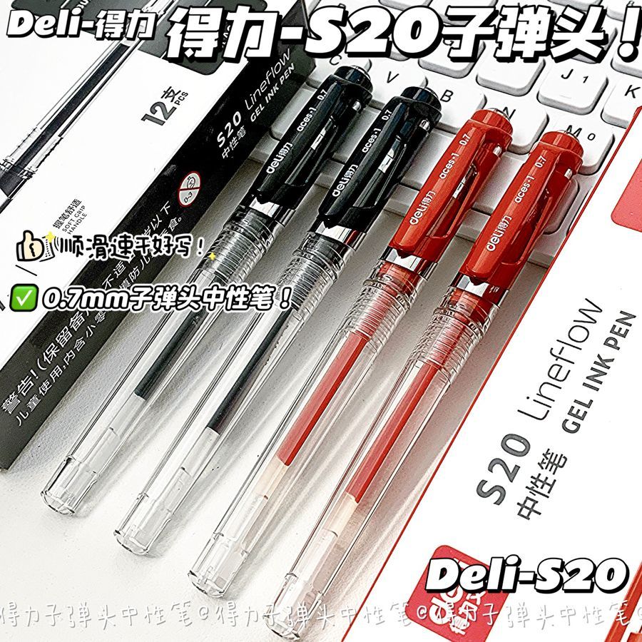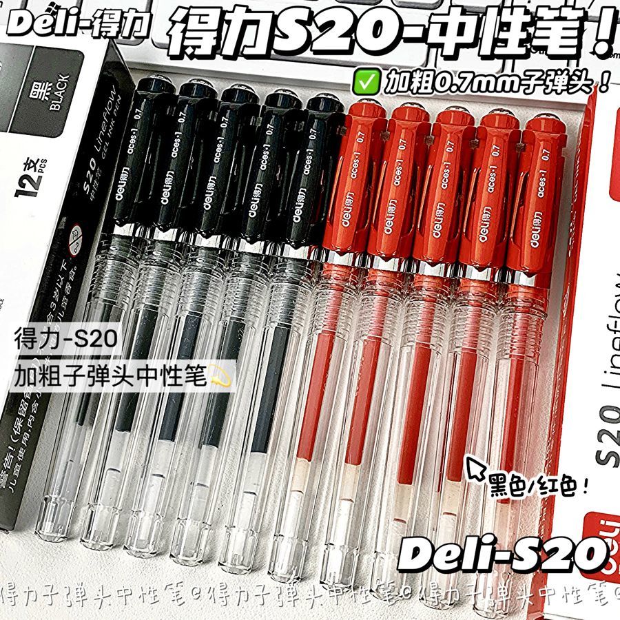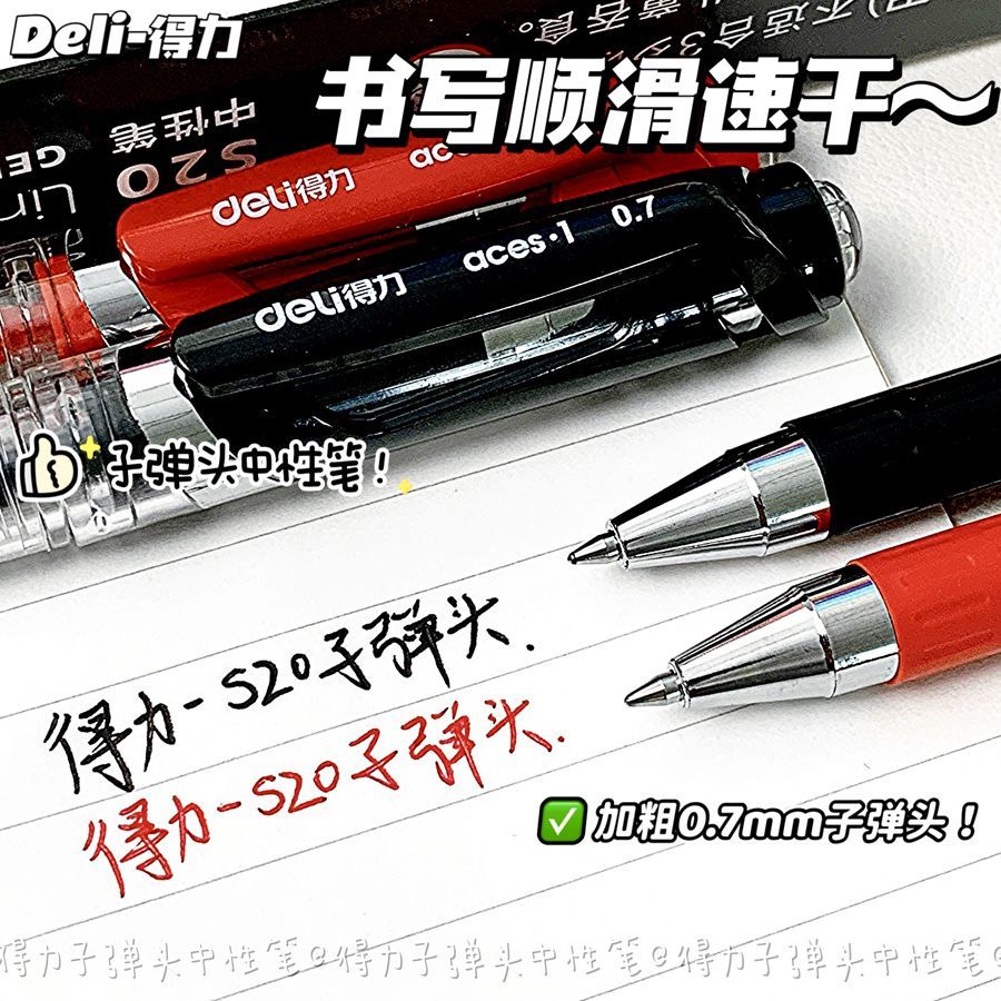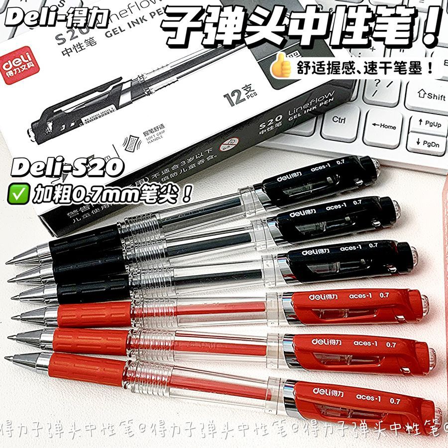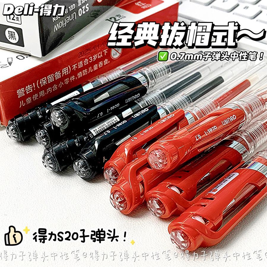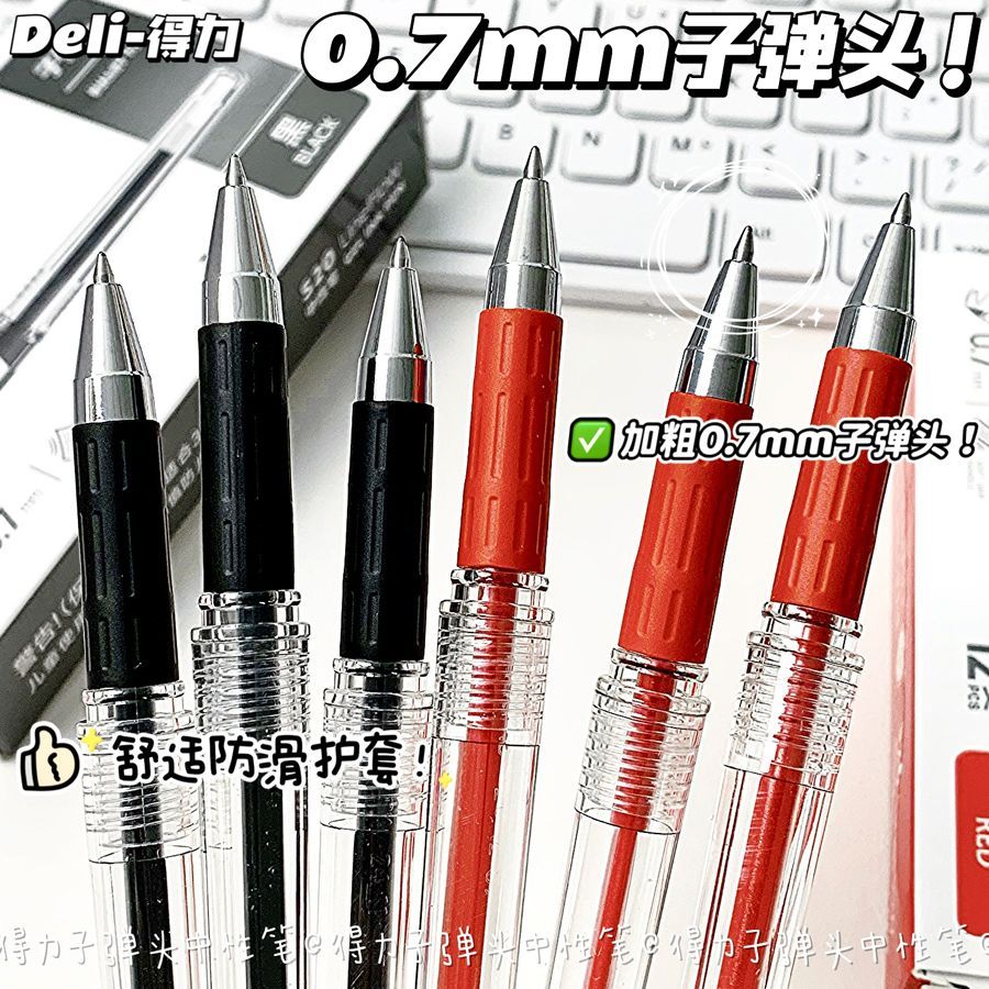 得力中性笔0.7子弹头mm黑红色学生商务签字笔办公笔老师专用红笔