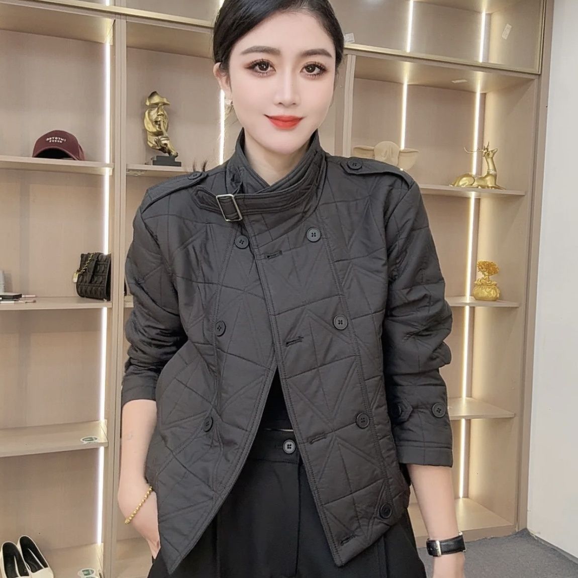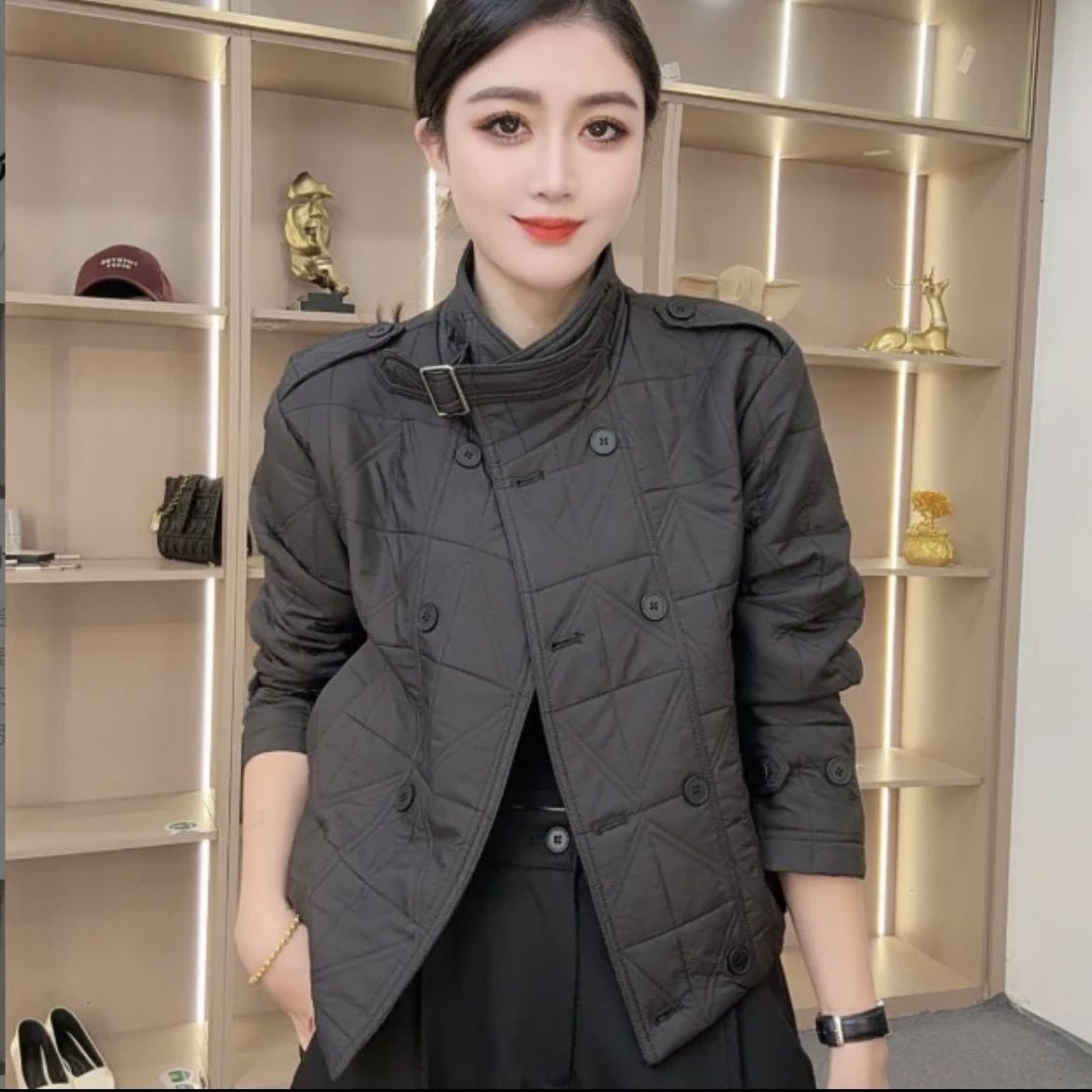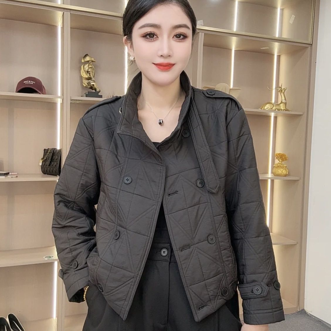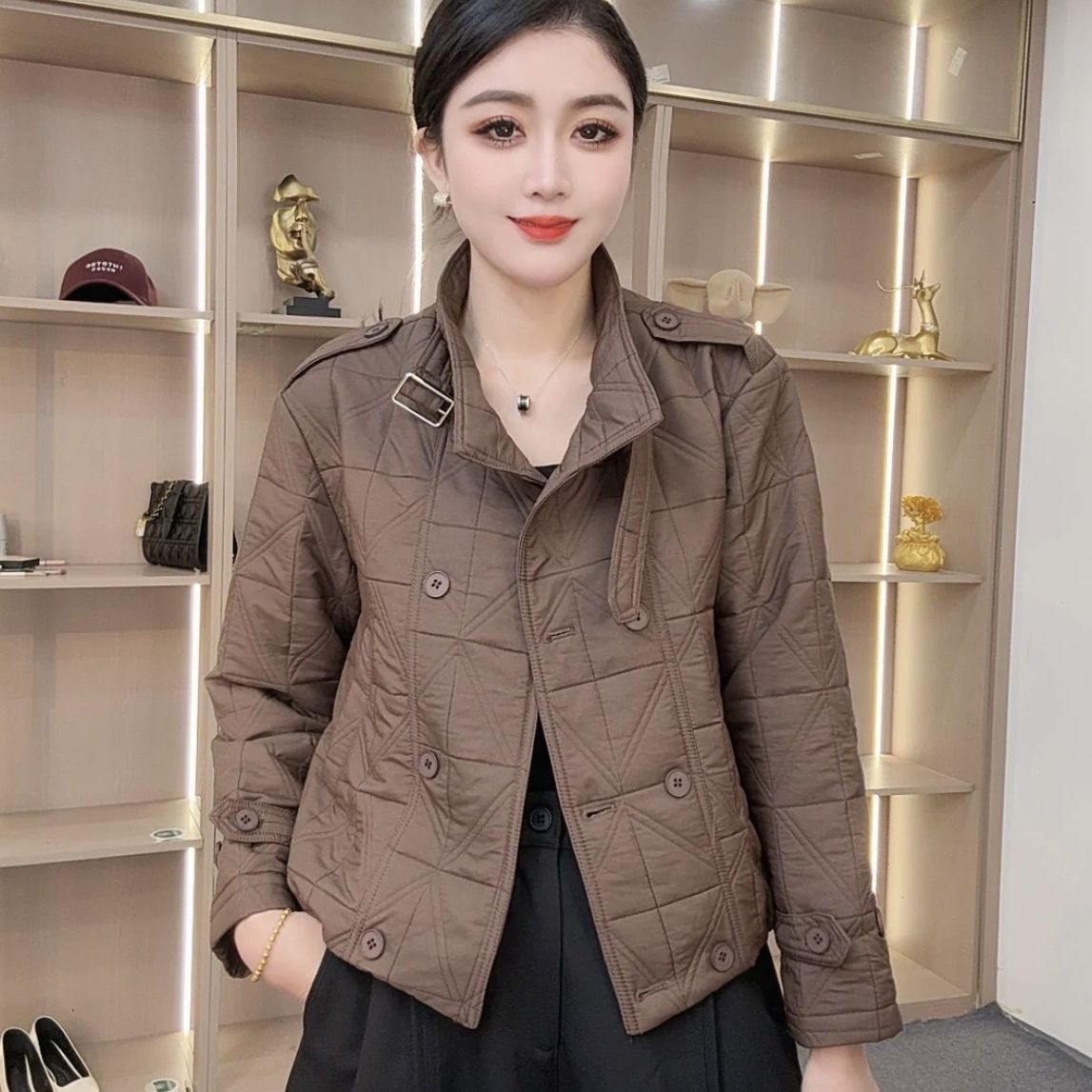 菱格短款棉衣外套女2025秋冬新款时尚立领休闲宽松夹棉轻薄小棉袄