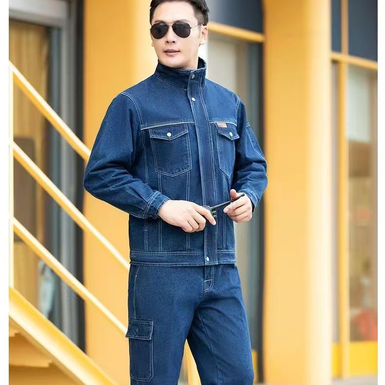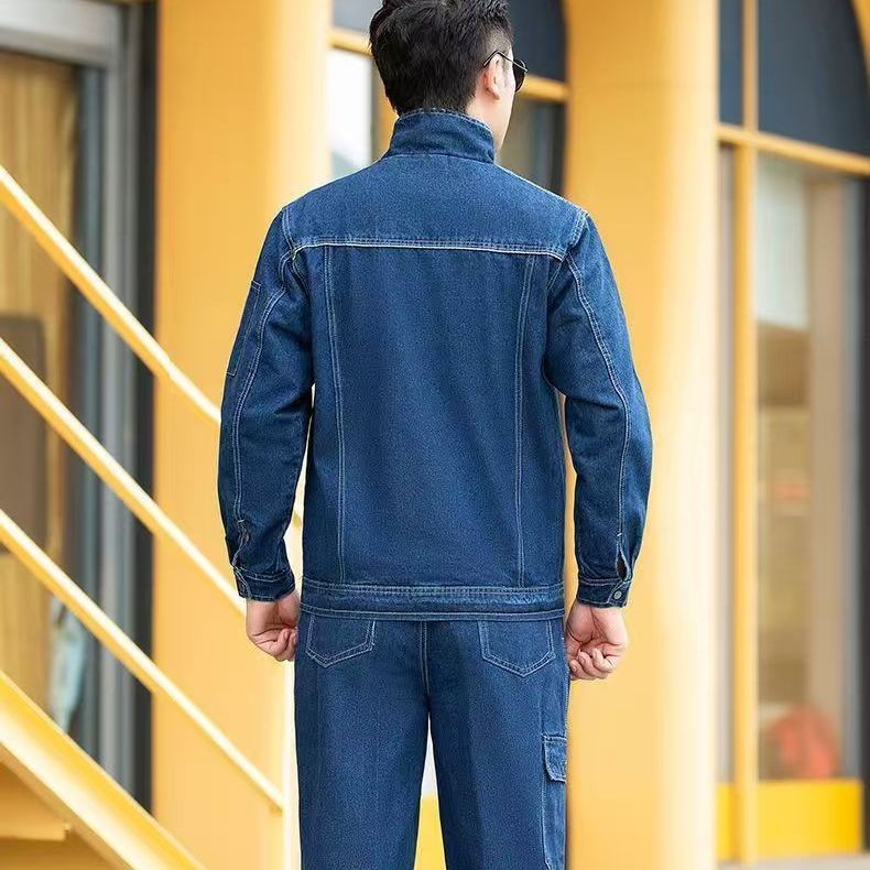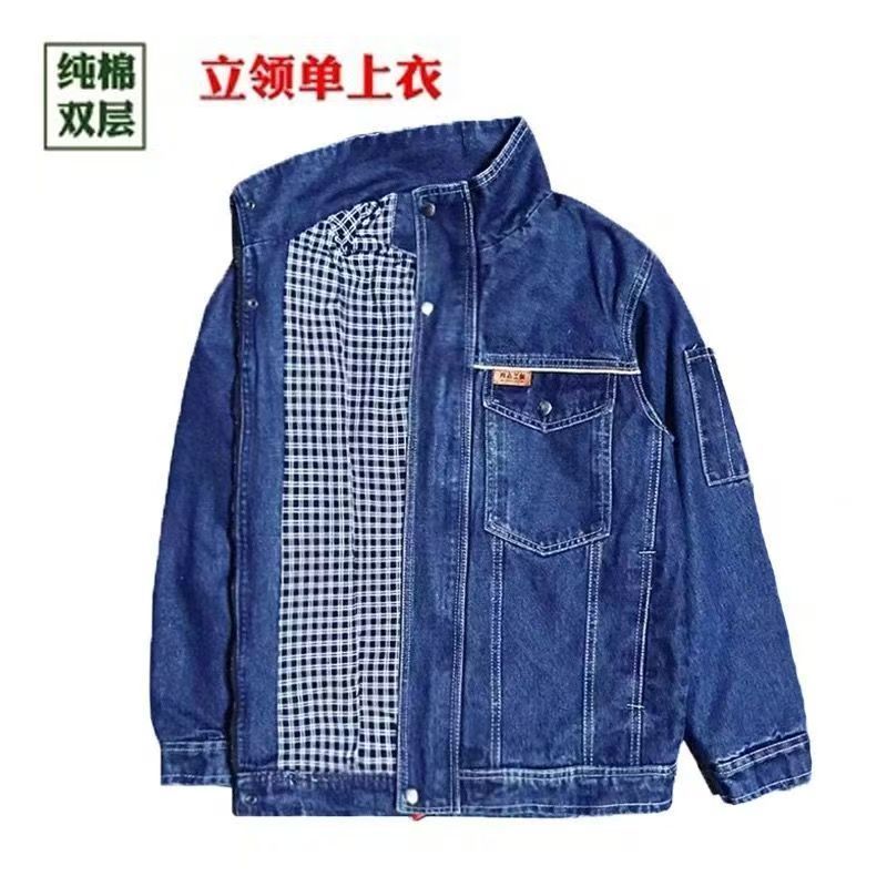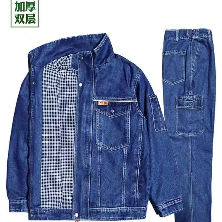 纯棉立领加厚牛仔工作服套装秋冬双层电焊防烫焊工工装劳保防护服