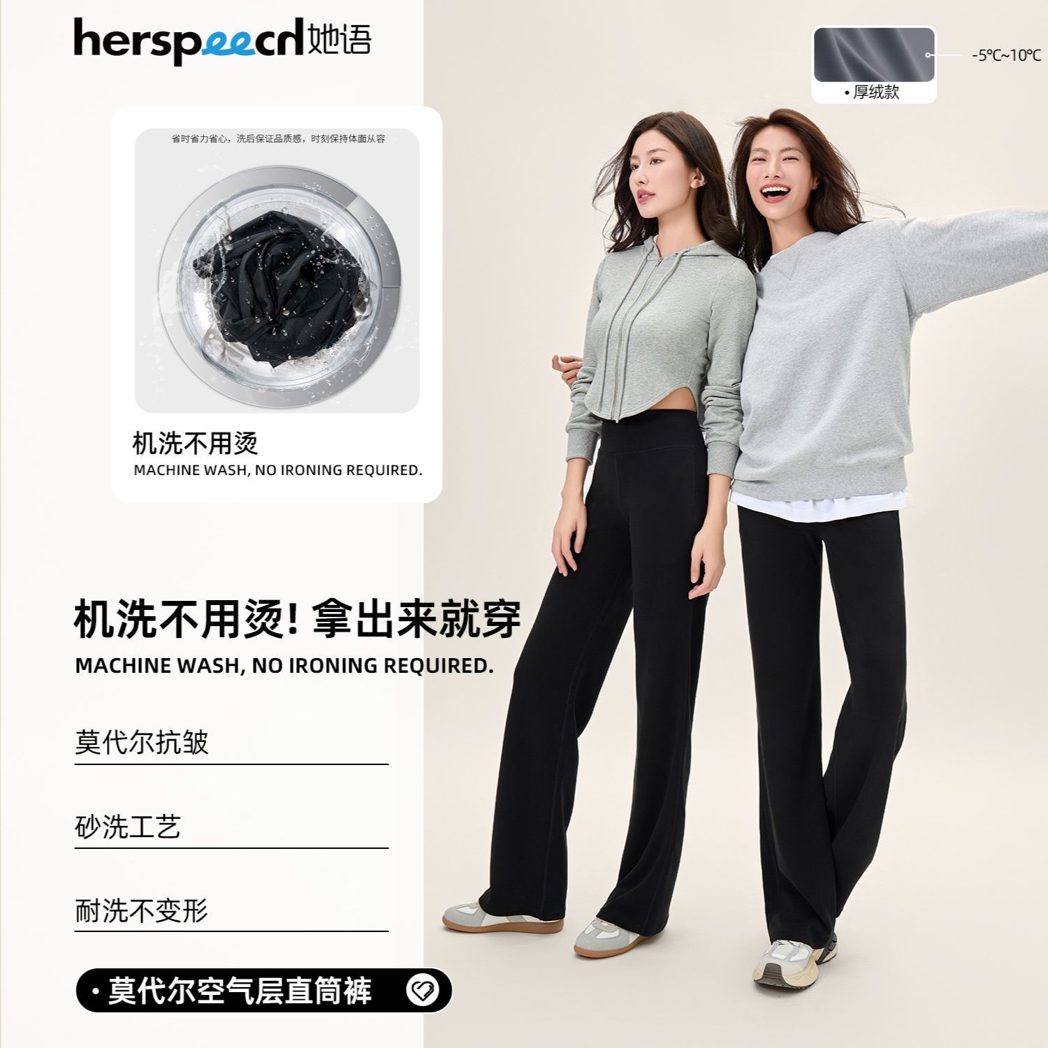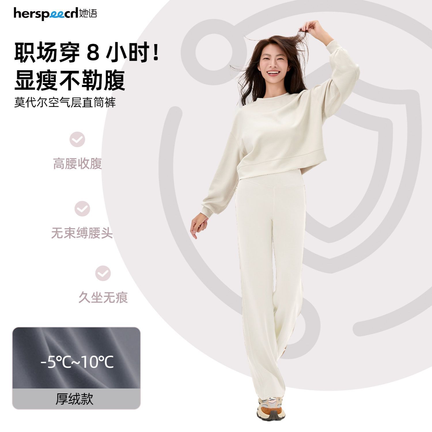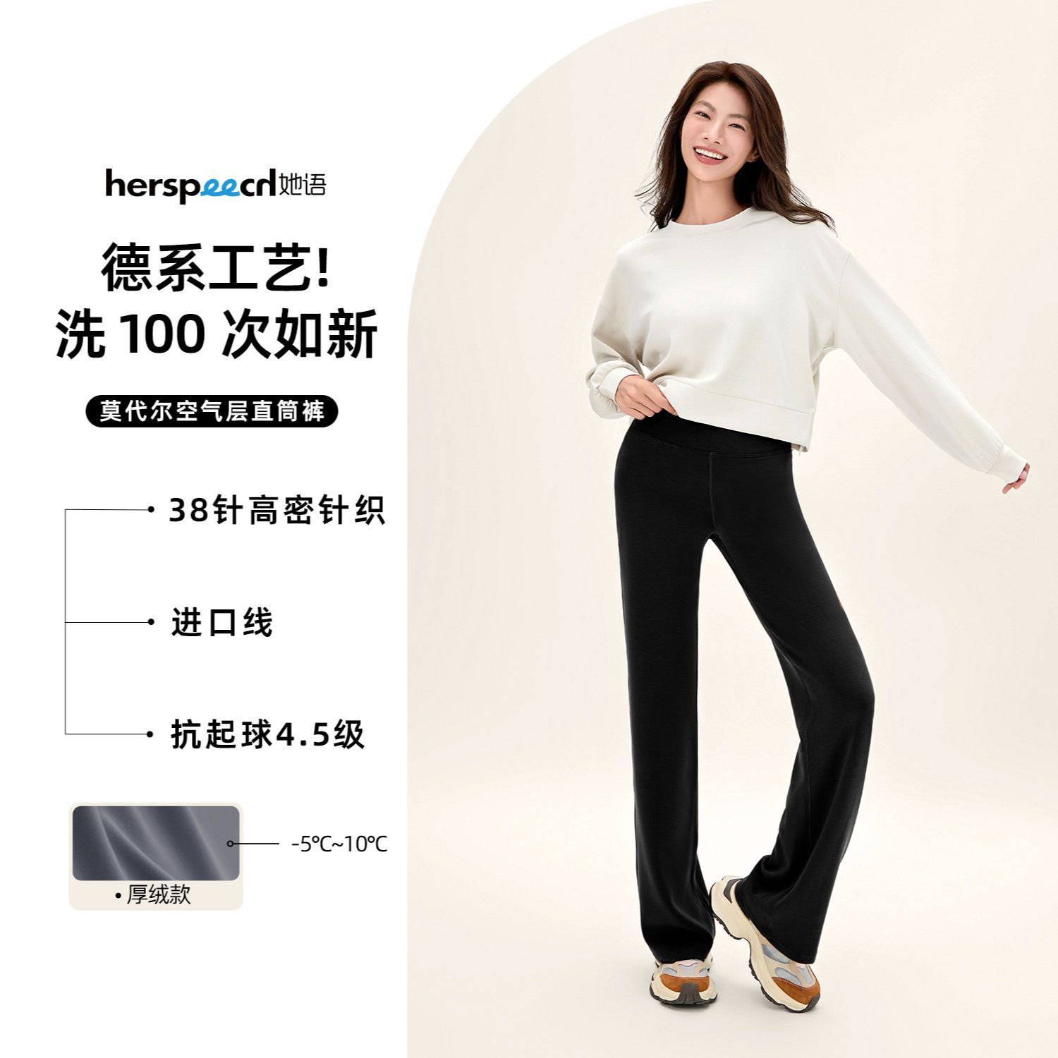 【倪虹洁同款】她语秋冬厚绒莫代尔直筒百搭遮胯显瘦休闲垂感裤