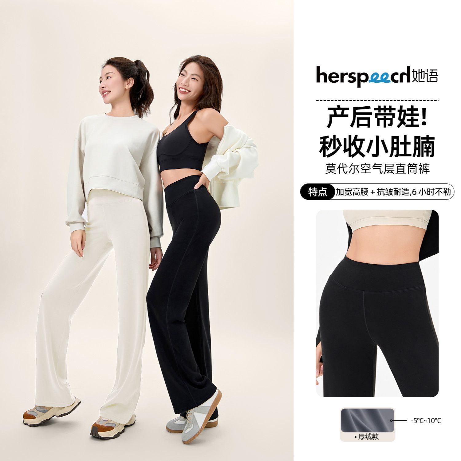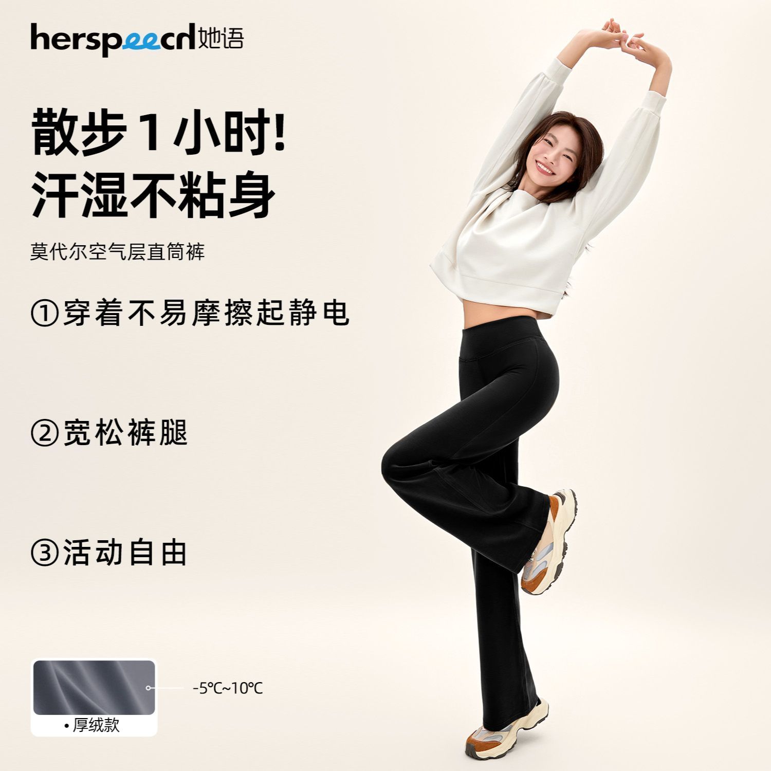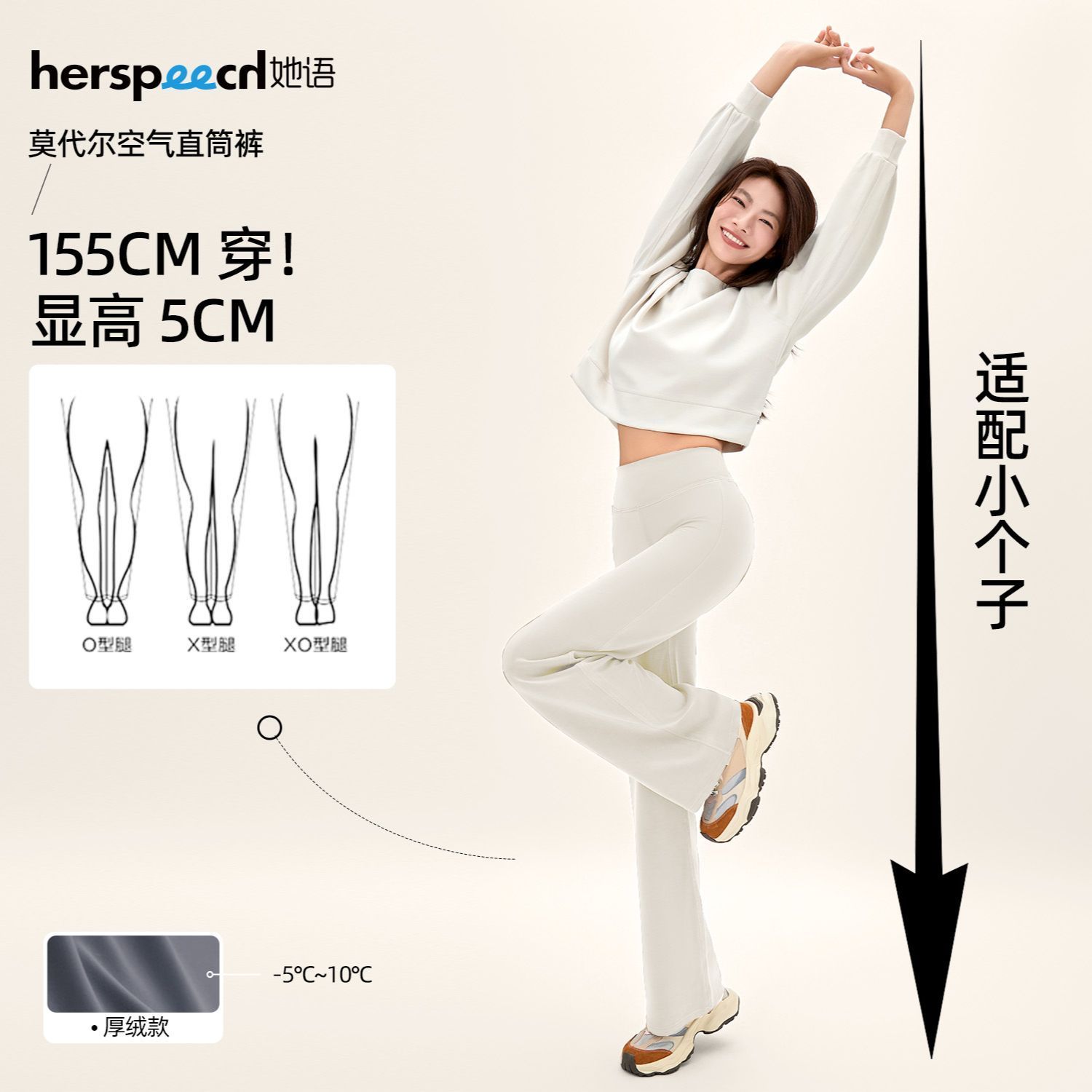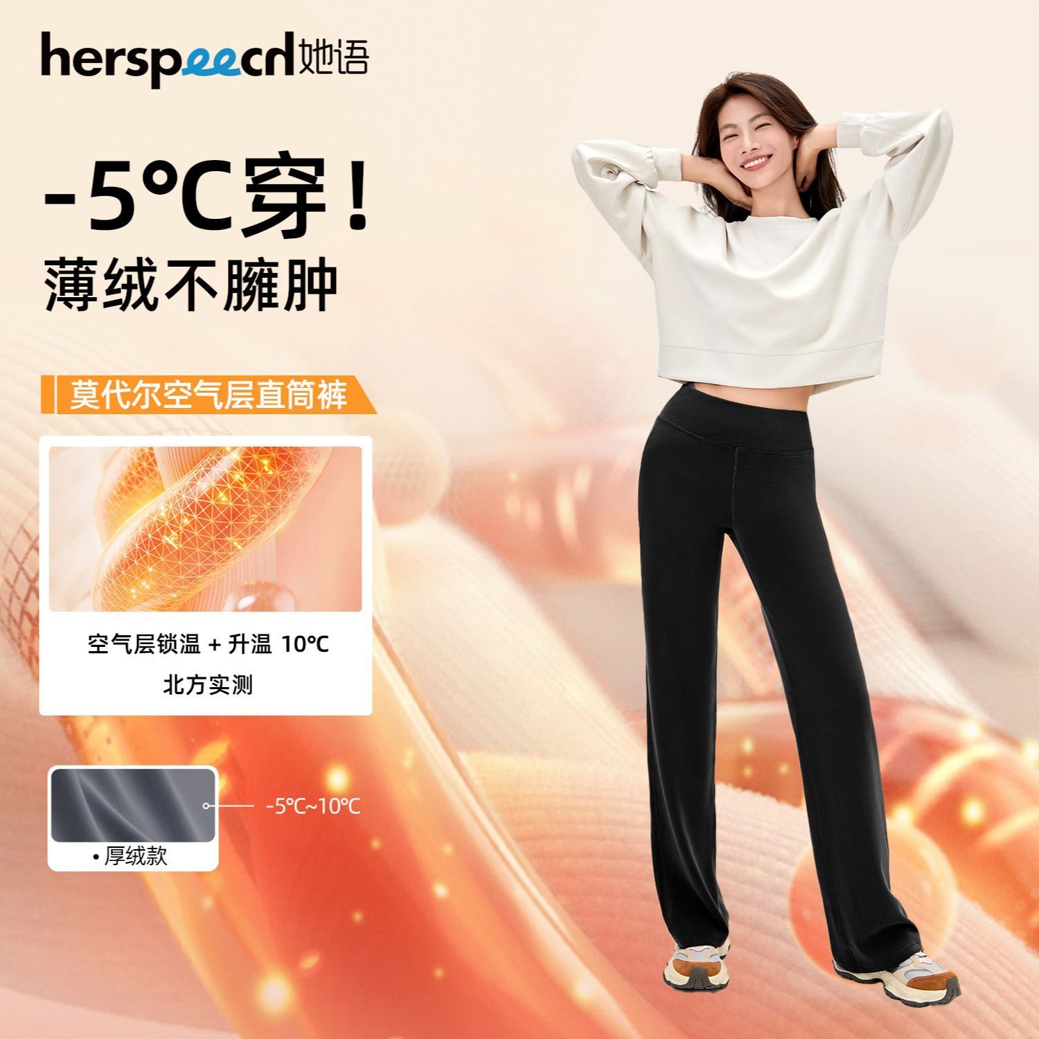 【倪虹洁同款】她语秋冬厚绒莫代尔直筒百搭遮胯显瘦休闲垂感裤