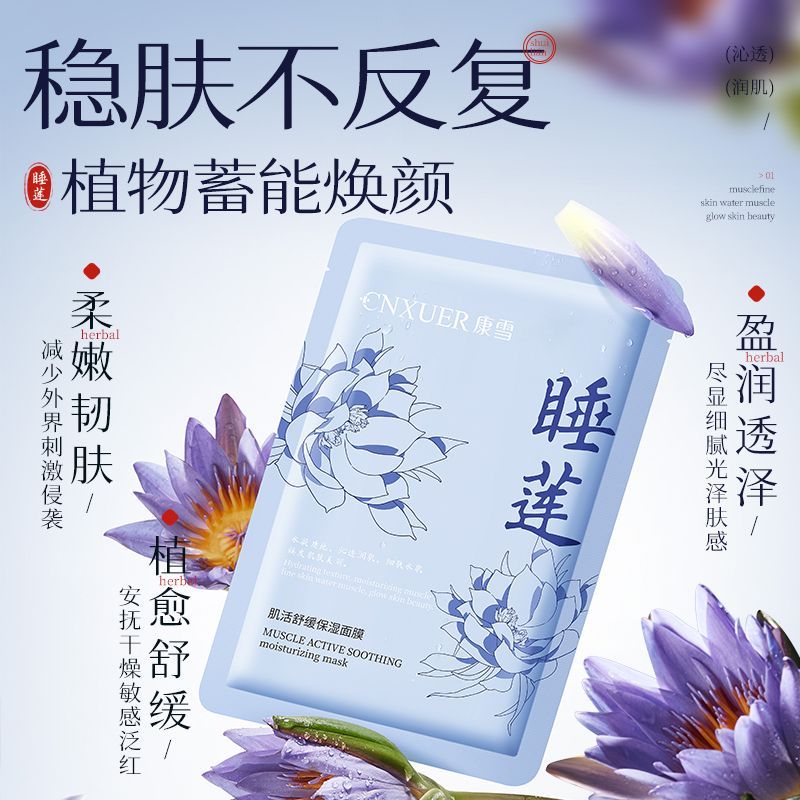 康雪睡莲面膜补水保湿抗氧提亮祛黄晒后修护敏感肌专用熬夜面膜女