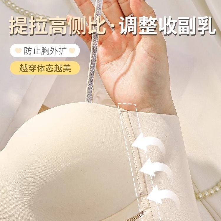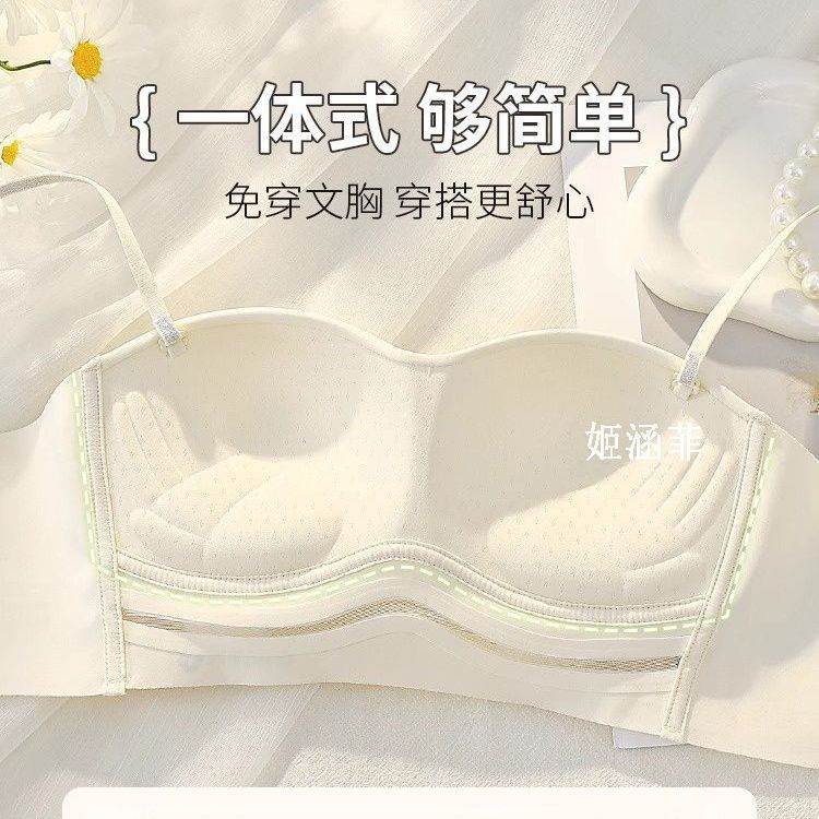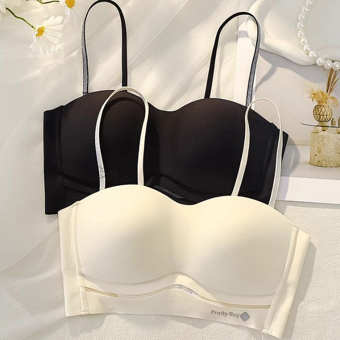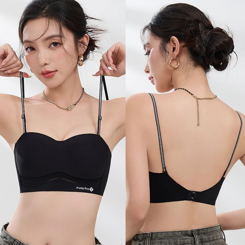 美背内衣女平胸微小胸聚拢不空杯带钻闪亮细肩带少女吊带文胸罩厚