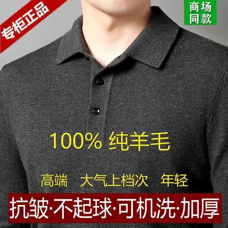 断码特价正品纯100%羊毛长袖T恤衫秋冬翻领加厚中老年休闲打底衫
