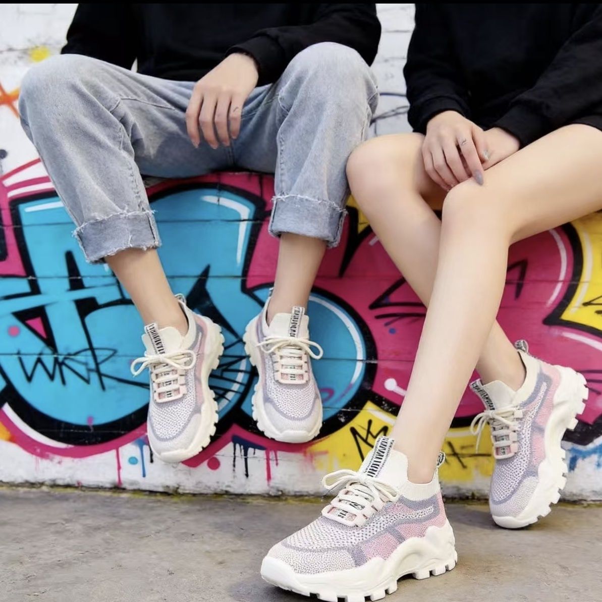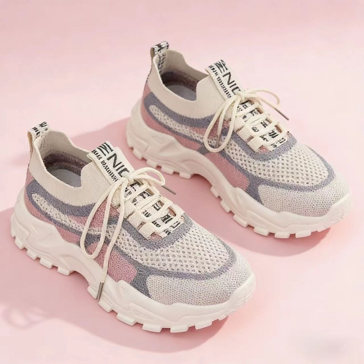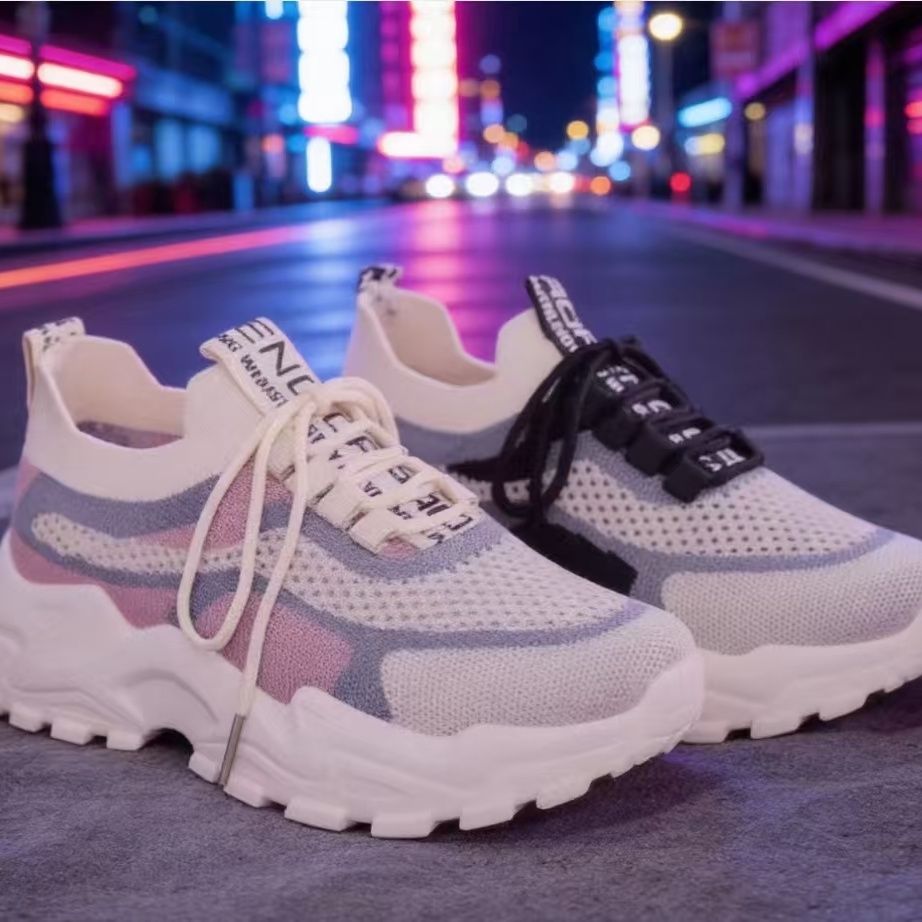 2026春夏新款运动女士鞋网红透气软底休闲帆布轻便跑步厚底老爹鞋