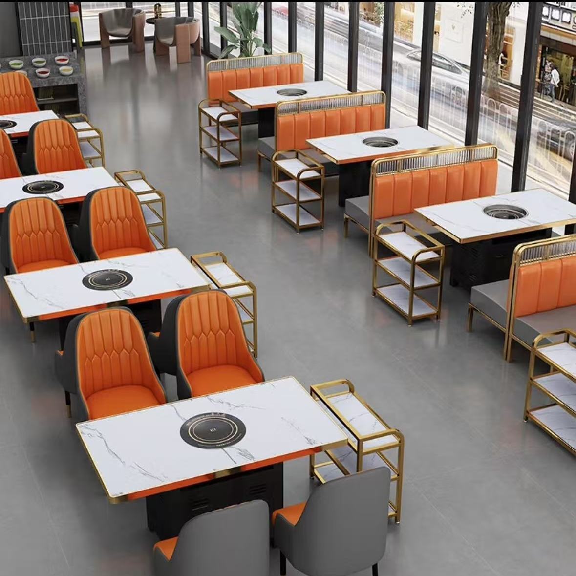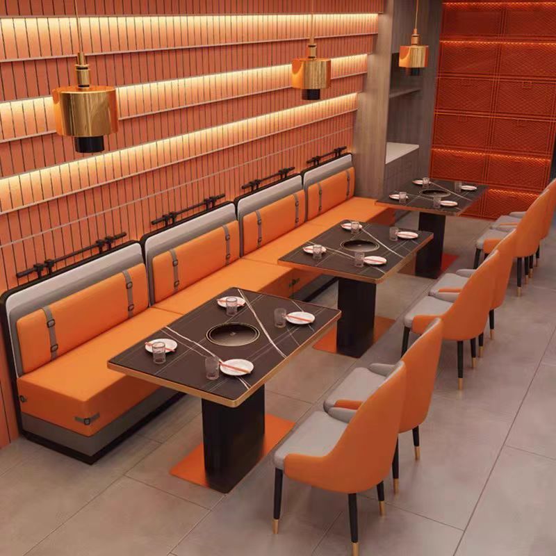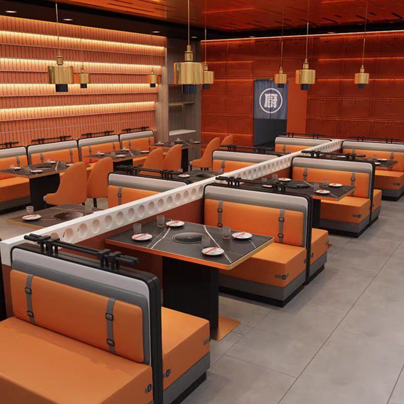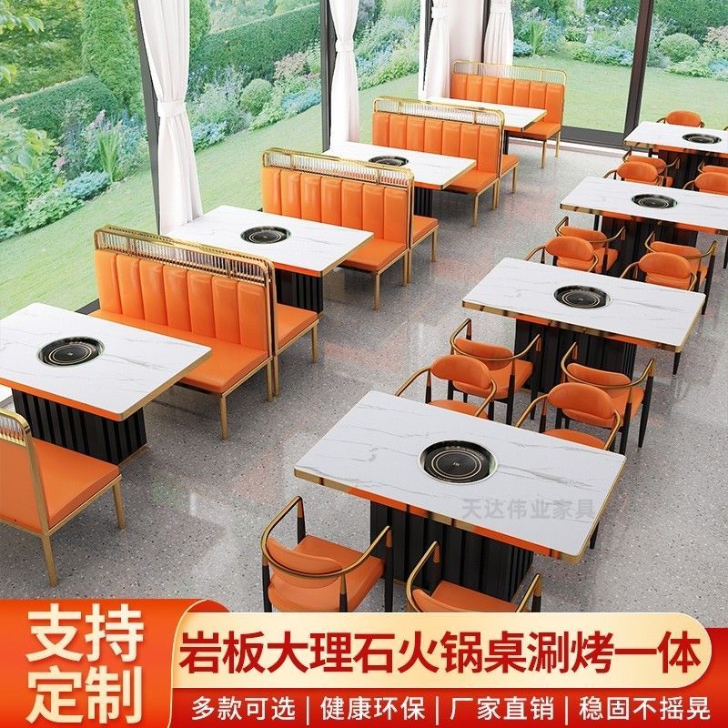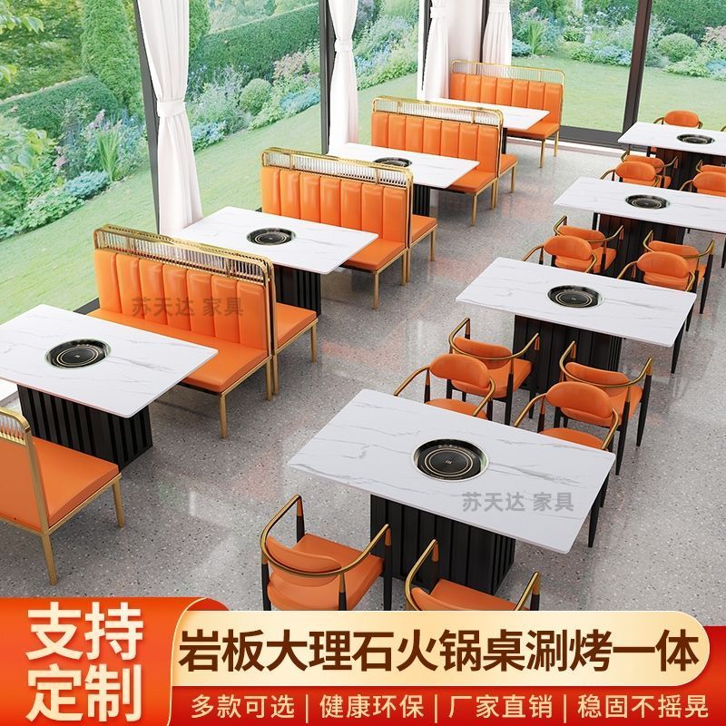 实木岩板大理石火锅桌子电磁炉商用烤涮一体无烟火锅桌椅卡座组合