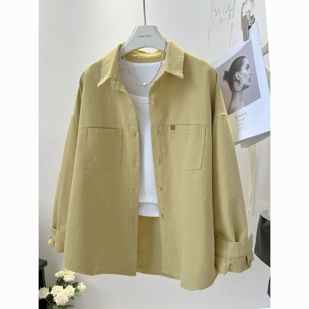 衬衫女外套春秋装新款韩版口袋宽松显瘦小个子长袖开衫上衣衬衣女