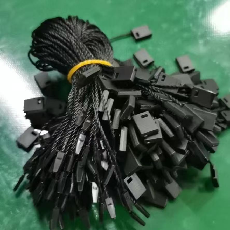 服装吊牌一次性吊粒方扣绳小方块吊粒黑色白色绳子牢固结实不扎手