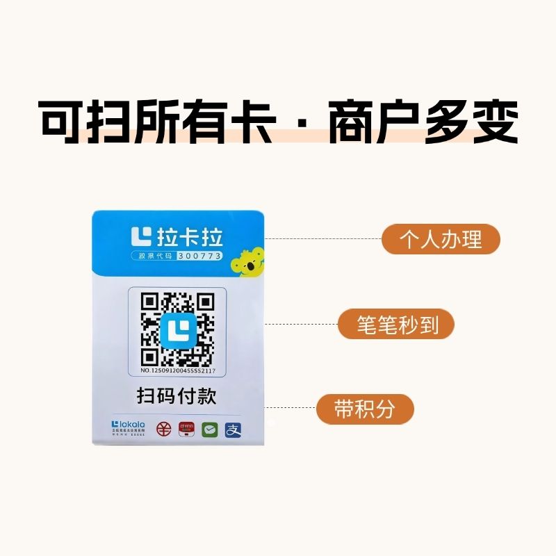拉卡拉扫码收款移动升级收款牌子扫码支付收款码手持收银吊牌挂牌