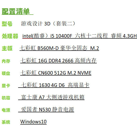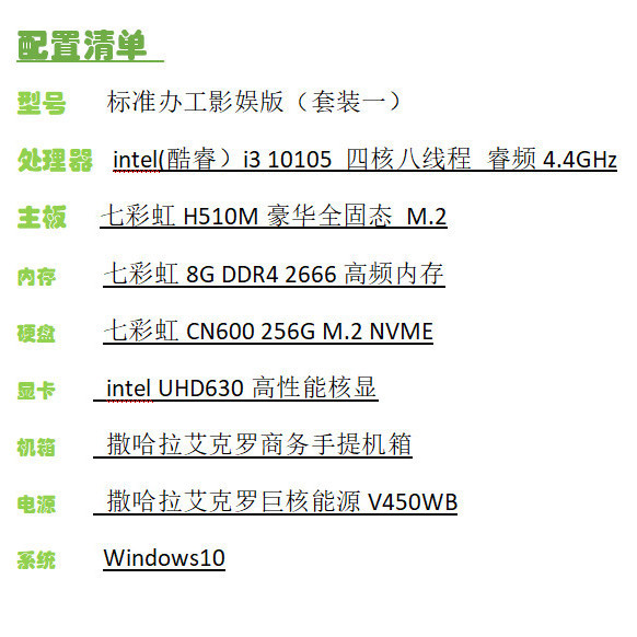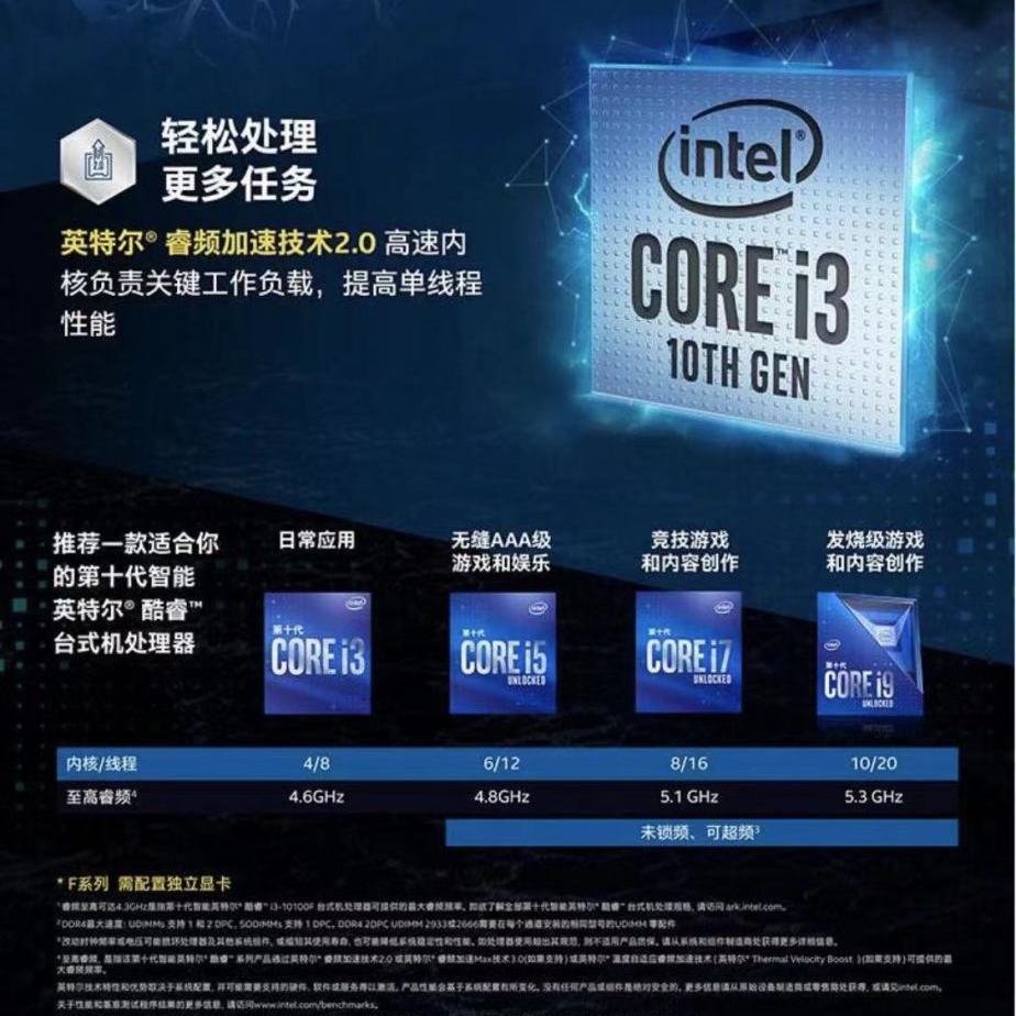 酷睿I3 10105办公家用台式DIY电脑设计网课企业采购商用主机全套