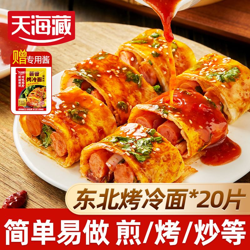 【20片】天海藏东北烤冷面500g/袋送酱汁酱料家庭装速食冷面片Q