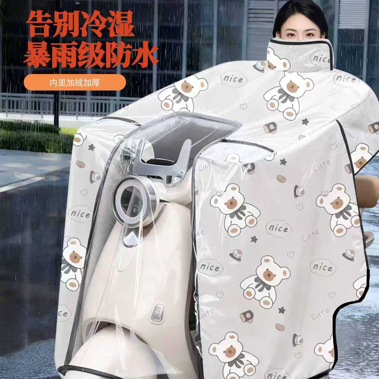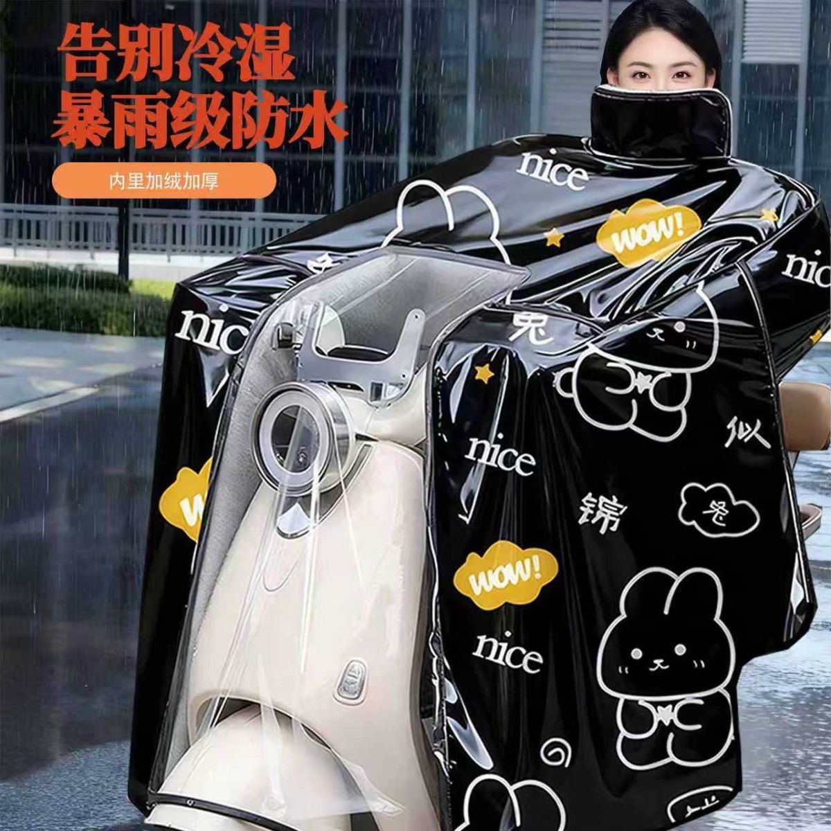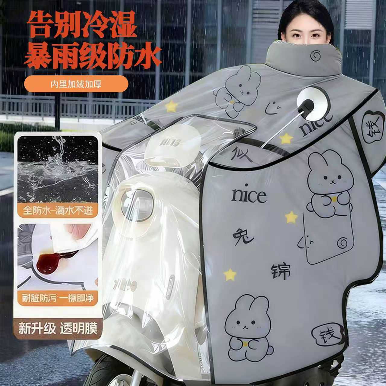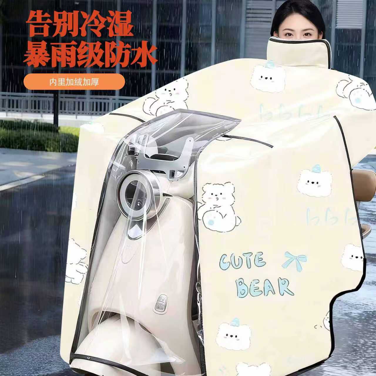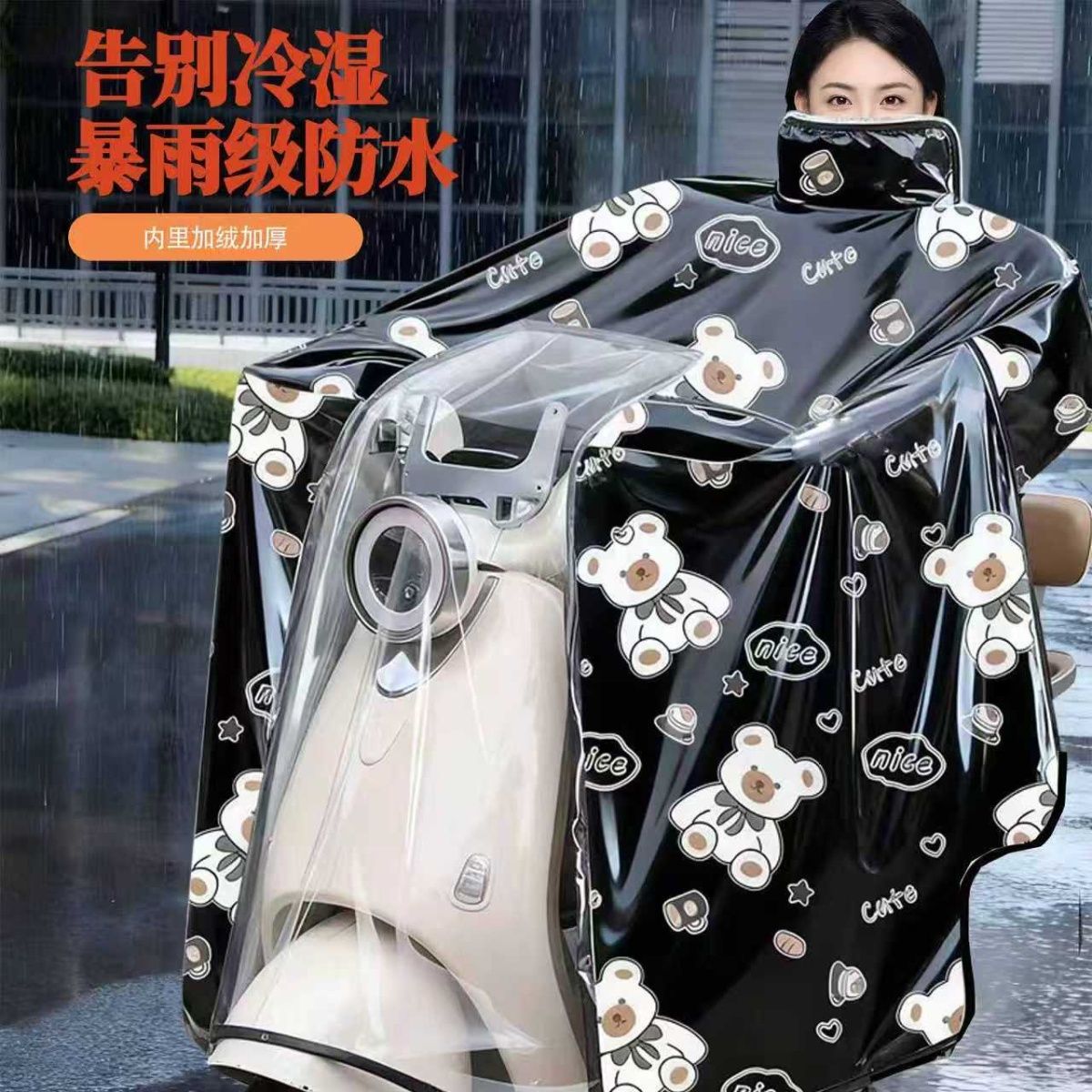 斗篷冬季覆膜电动车挡风加绒加厚防风加大电瓶车摩托车防水保暖