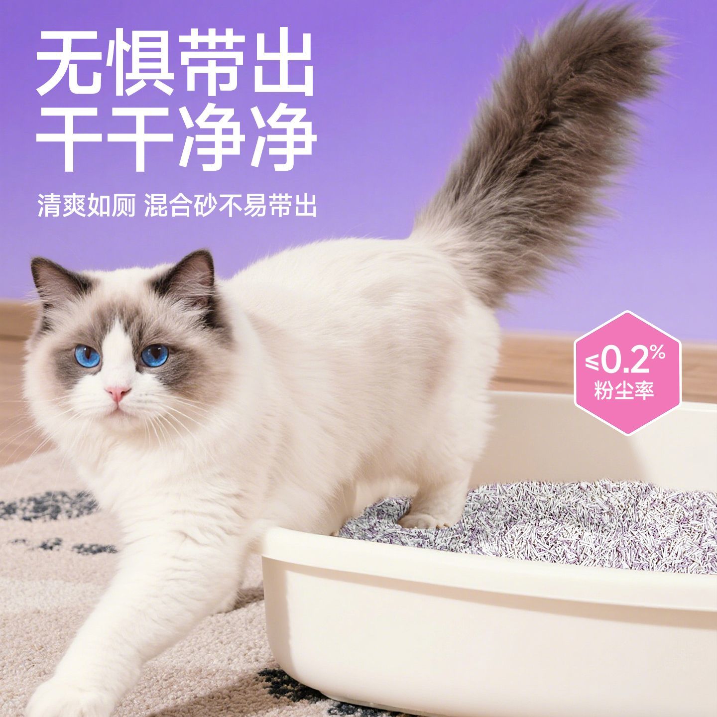 甄选喵3合1薰衣草混合猫砂豆腐木薯植物除臭低尘秒速结团可冲马桶