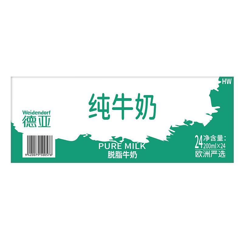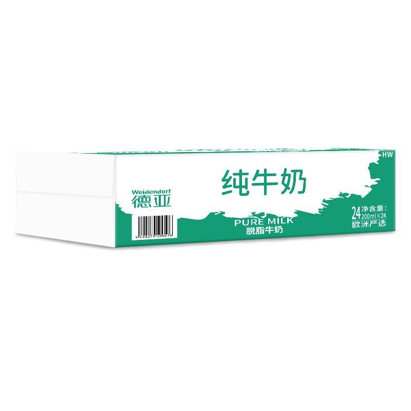 德亚欧洲严选脱脂纯牛奶200ml*24盒整箱装 0脂肪德国进口