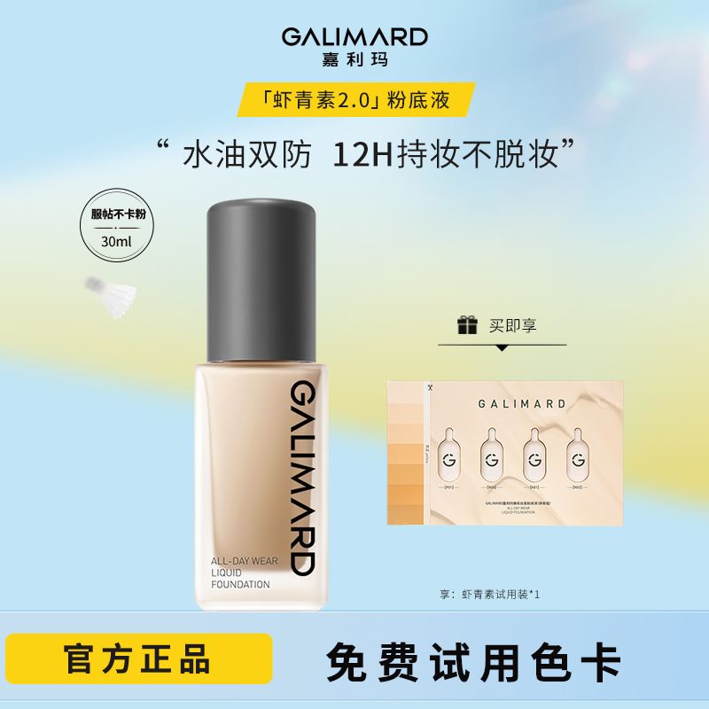 嘉利玛虾青素粉底液抗氧化持妆不脱控油不卡粉持久保湿油皮不暗沉
