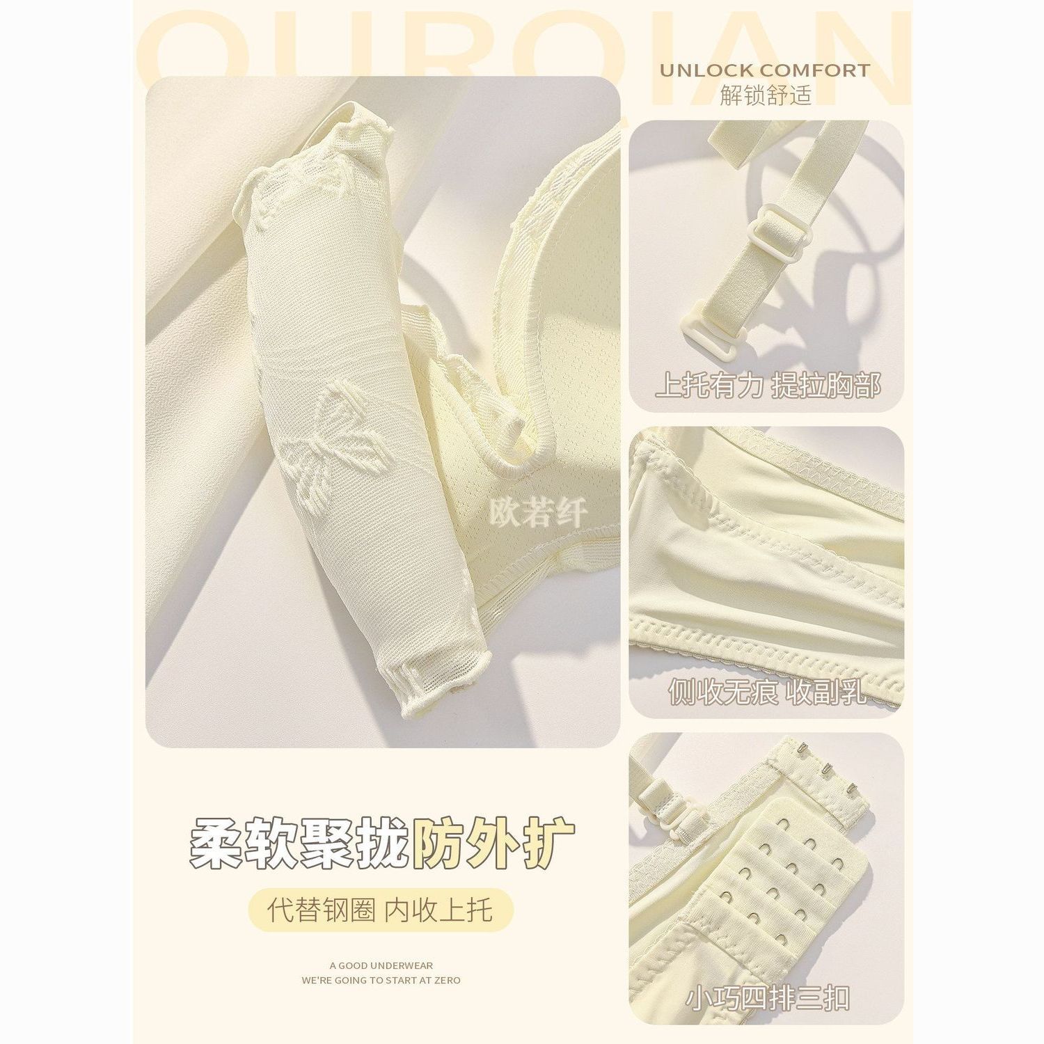KISSY氧心无痕轻薄冰丝山茶花内衣女无钢圈侧收副乳聚拢美背文胸